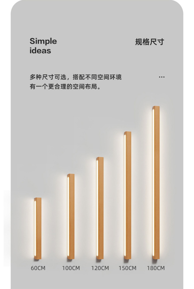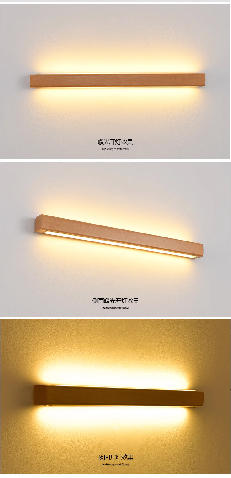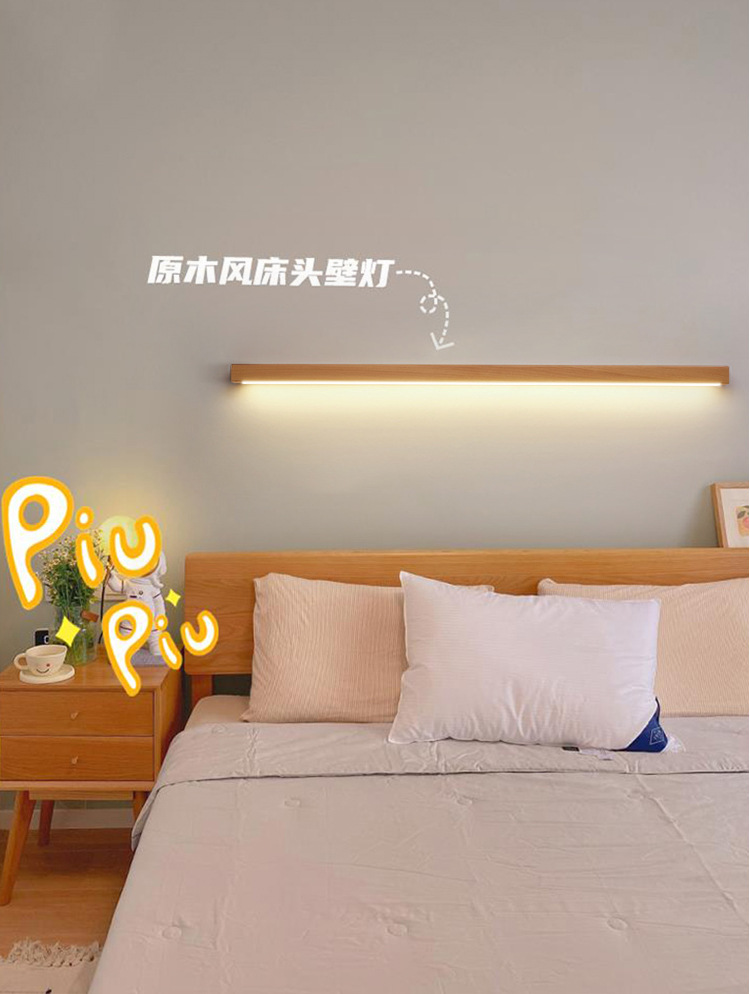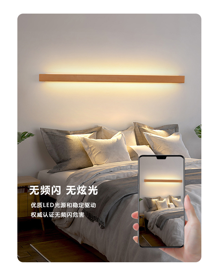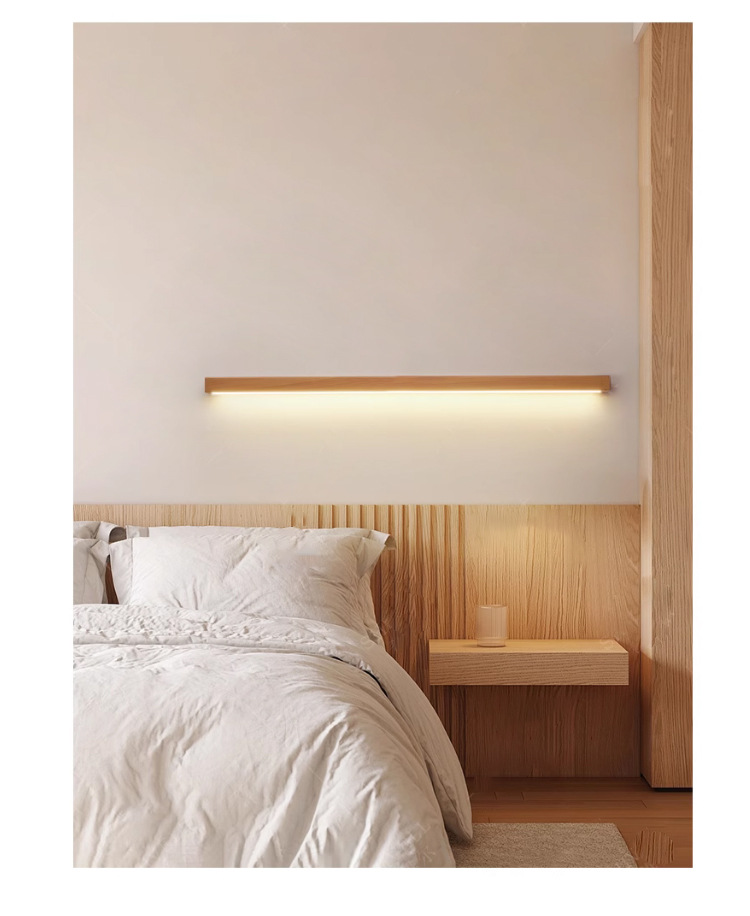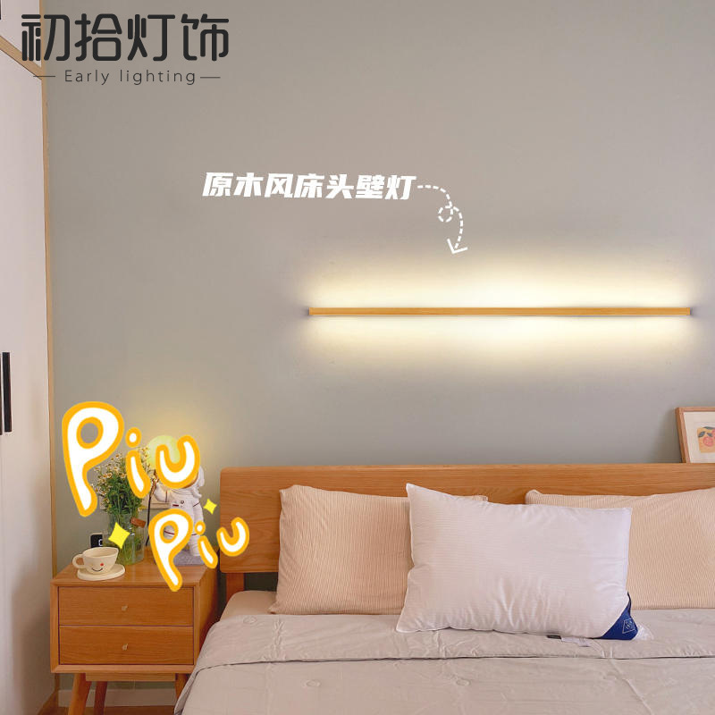 긴 벽 램프 침실 일본 스타일 간단한 로그 단단한 나무 라인 스트립 램프 크리에이티브 룸 마스터 침실 뒷벽 램프스토어 가기