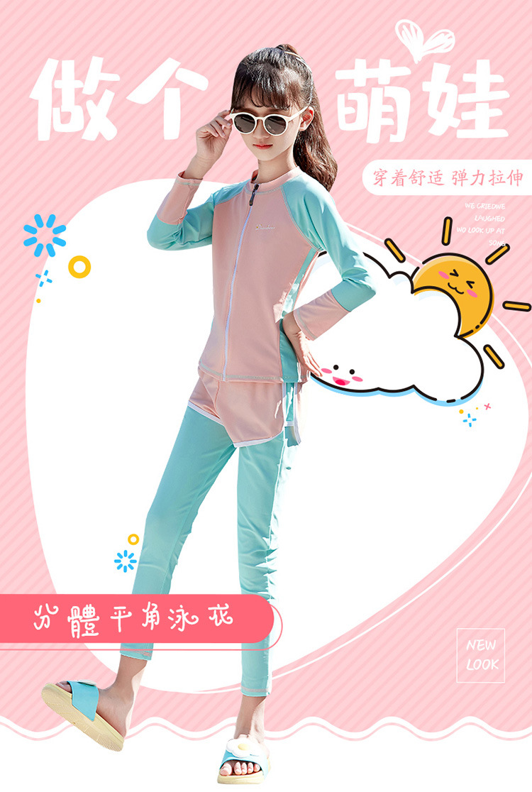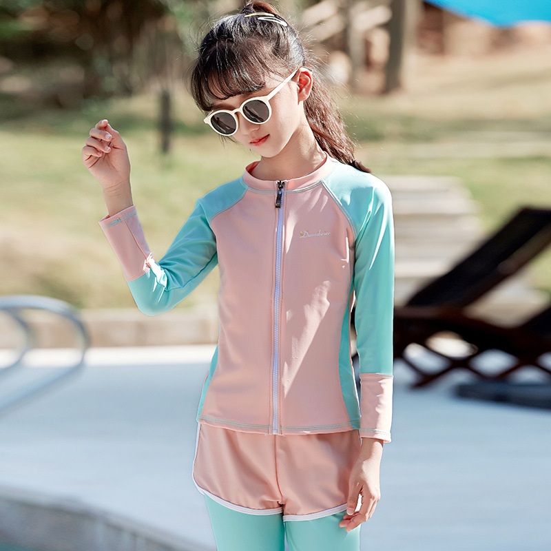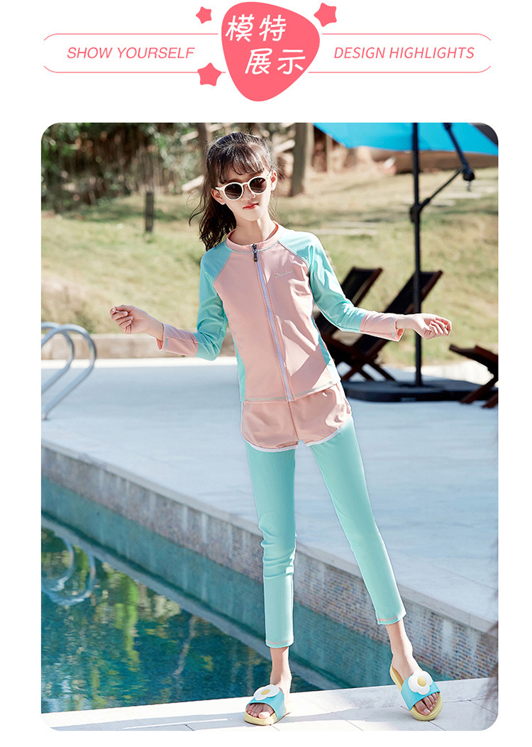아동용 수영복, 여아용 신형 중대형 아동용 긴팔 바지, 지퍼가 달린 여아용 수영복, 공장 재고 도매스토어 가기