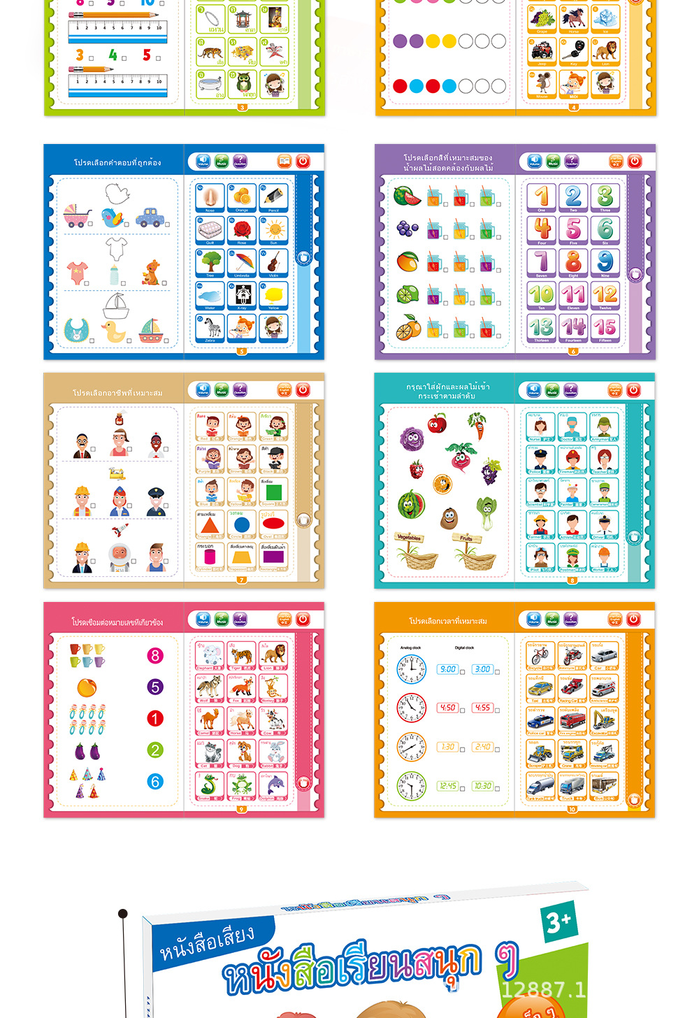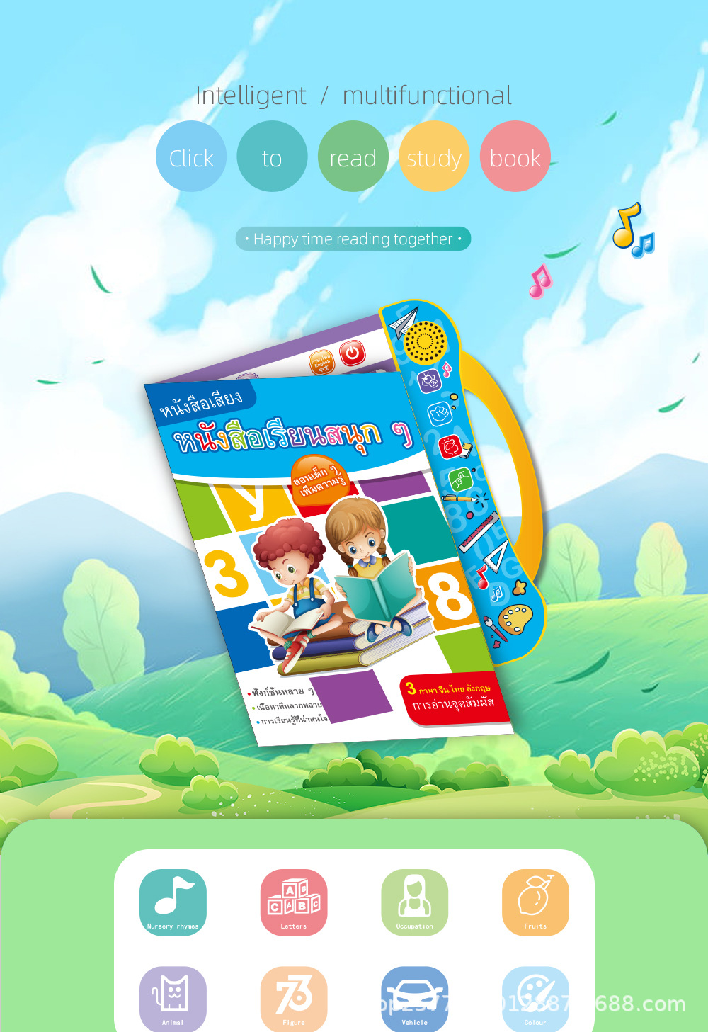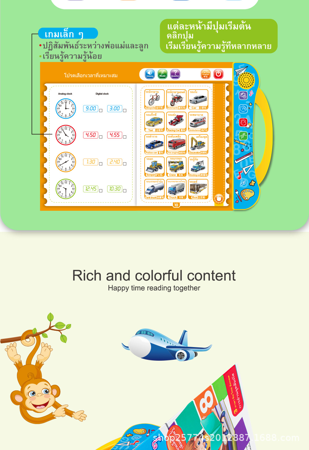 어린이 중국어-영어 및 태국 이중 언어 포인트 읽기 아기 조기 교육 사고 개발 포인트 읽기 기계 그림 포인트 읽기 책