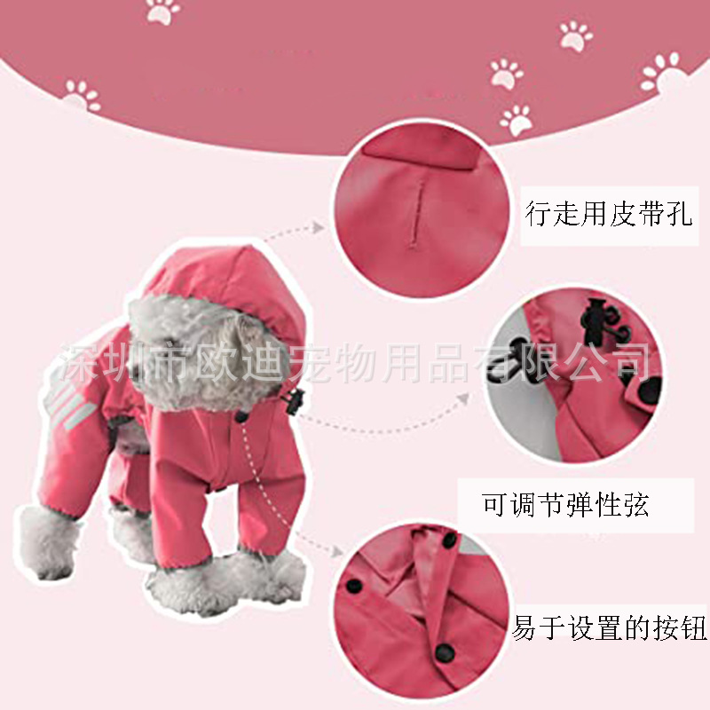 반사 테이프 판초가있는 중간 및 작은 개에 적합한 덮개가있는 방수 강아지 비옷