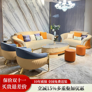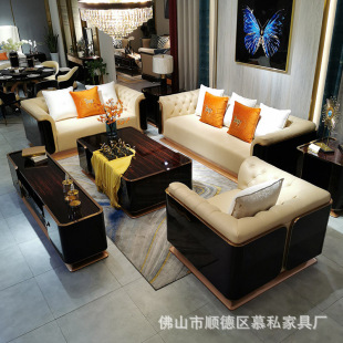 포스트 모던 라이트 럭셔리 가죽 침대 더블 1.8 m 아메리칸 호텔 모델 룸 라이트 럭셔리 가구 홍콩 스타일 마스터 침실 가죽 침대스토어 가기