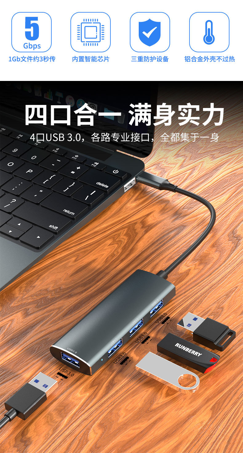 USB3.0 허브 고속 인터페이스 네트워크 카드 1대4 분배기 컴퓨터 확장기 키보드 마우스 확장스토어 가기