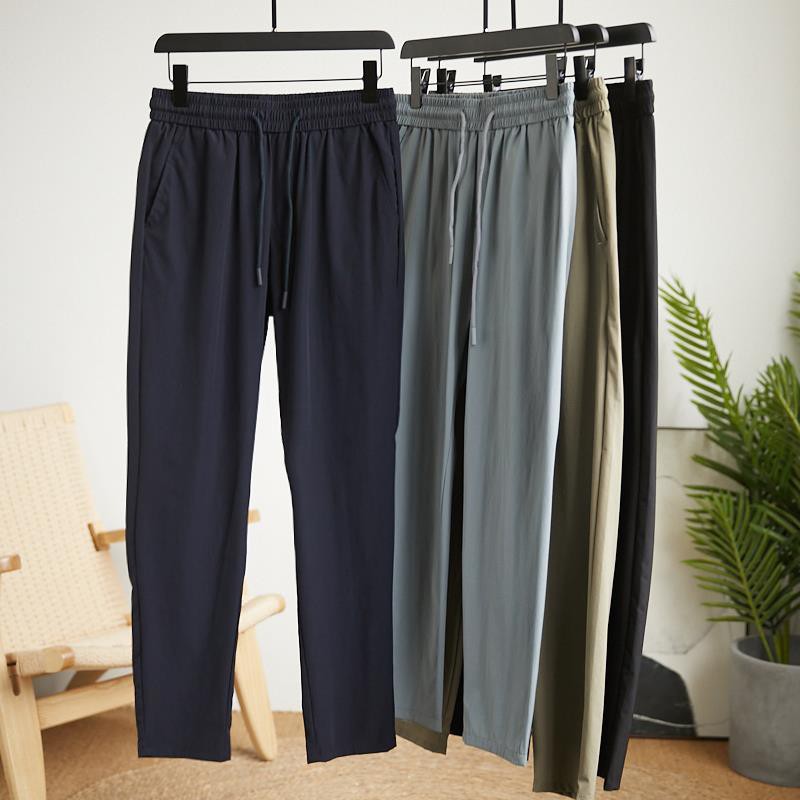 남성 여름 얇은 작업 유행 느슨한 스트레이트 통기성 스포츠 바지 새로운 얼음 실크 린넨 캐주얼 긴 바지 공장스토어 가기