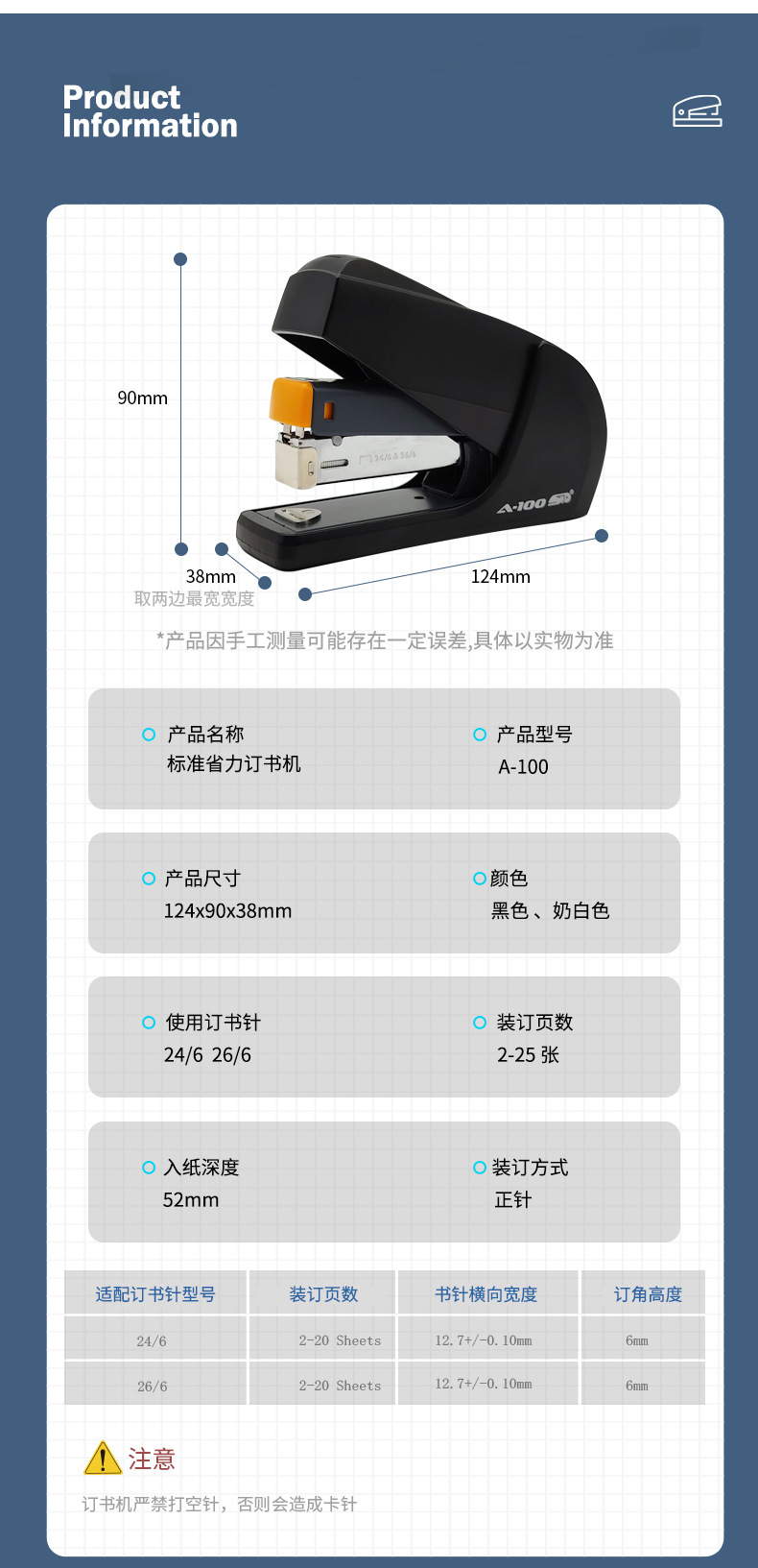깃발 A- 100 노동 절약 스테이플러 학생 사무실 스테이플러 바인딩 기계 노동 절약 12 스테이플러스토어 가기