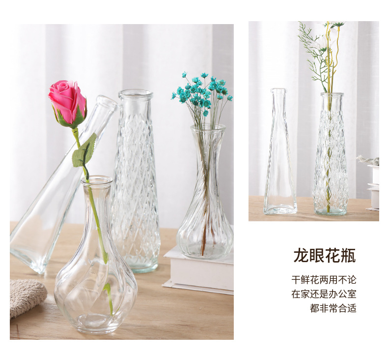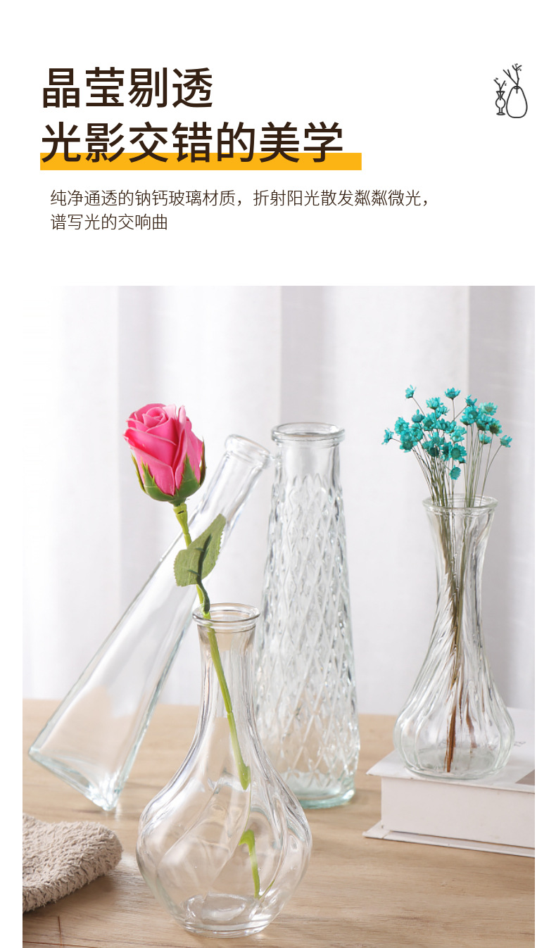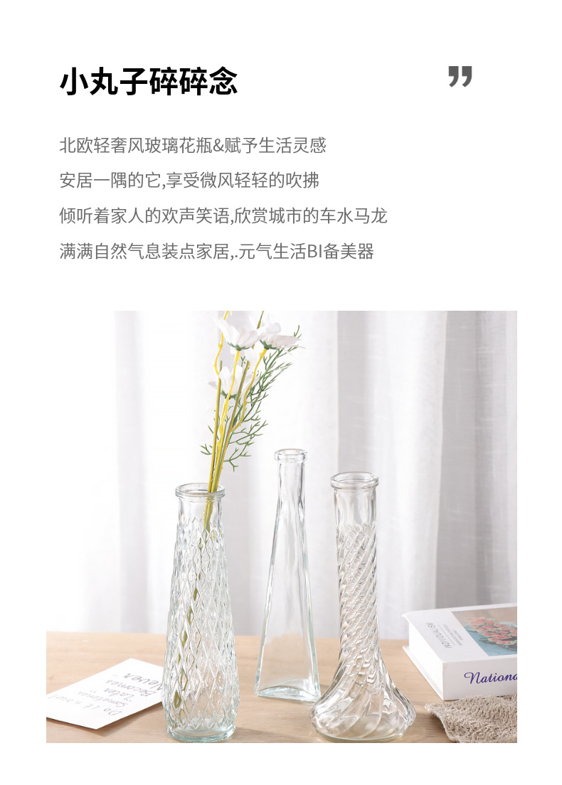 북유럽 가벼운 고급 유리 꽃병 간단한 수경 꽃꽂이 꽃병 식탁 홈 작은 신선한 말린 꽃 장식 장식품스토어 가기