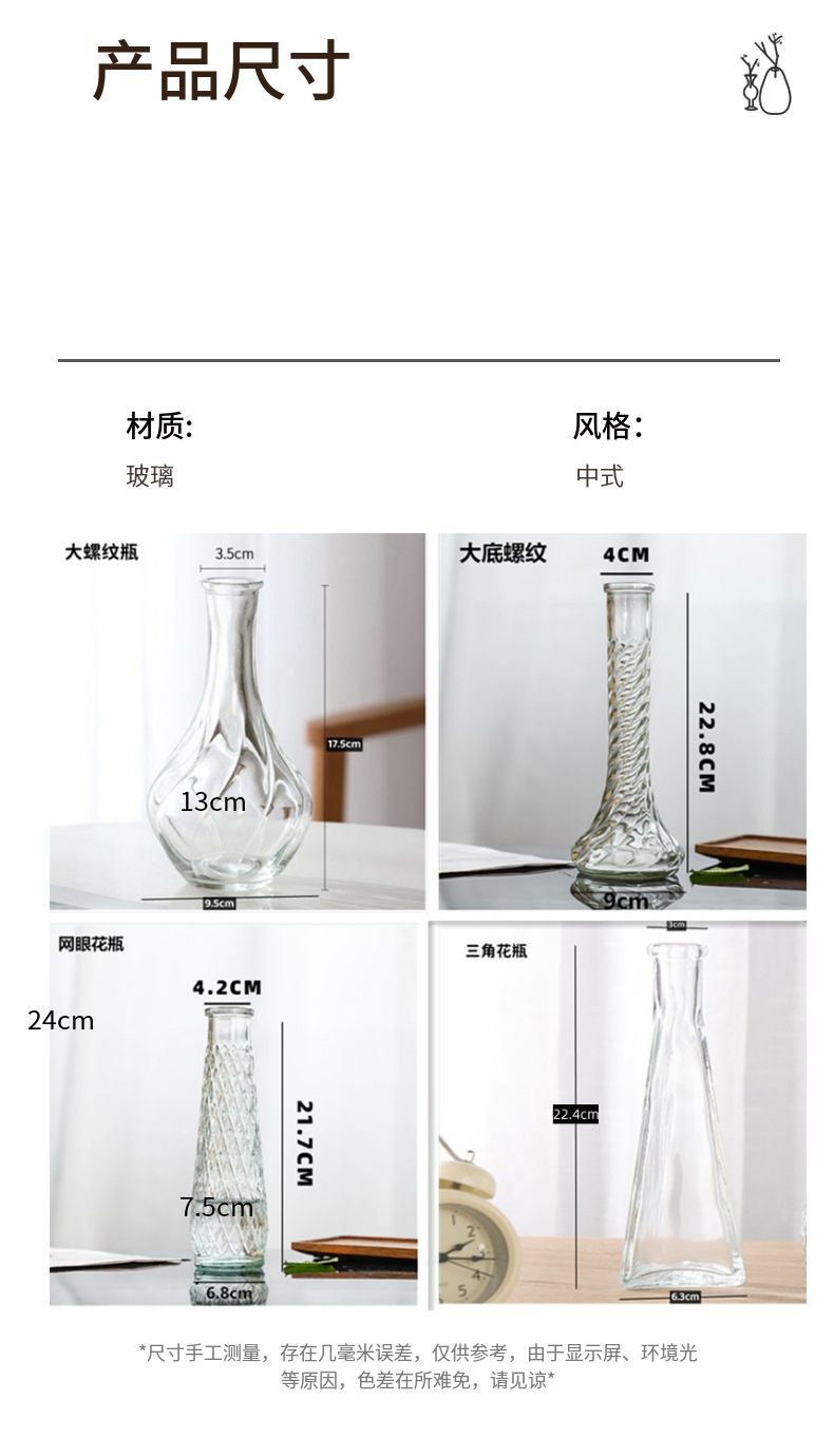 북유럽 가벼운 고급 유리 꽃병 간단한 수경 꽃꽂이 꽃병 식탁 홈 작은 신선한 말린 꽃 장식 장식품