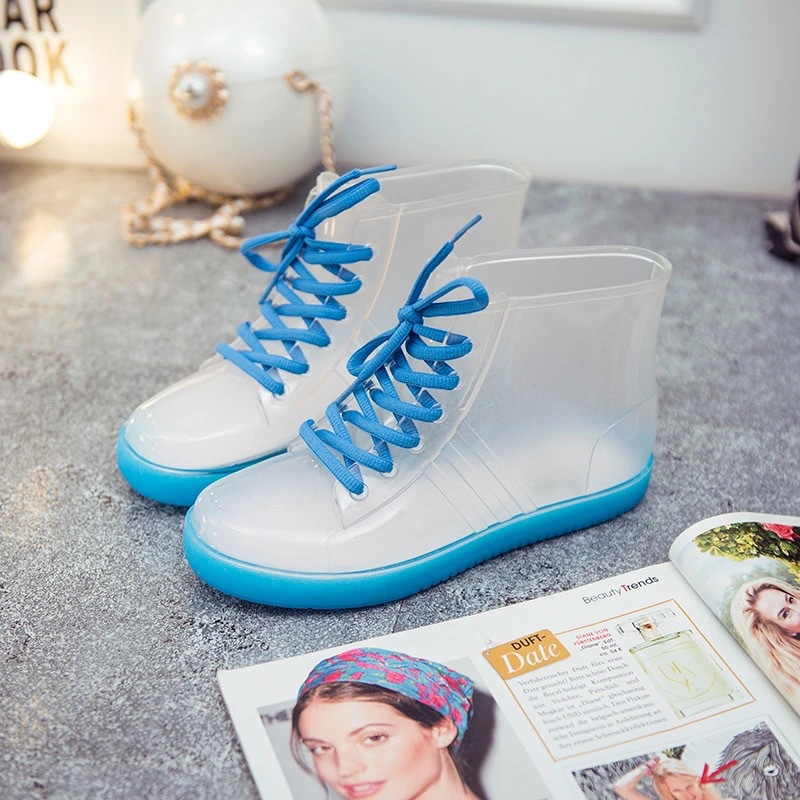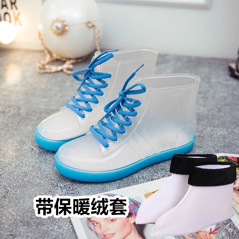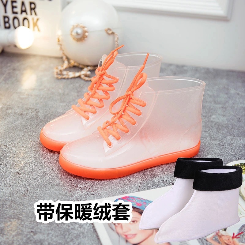 도매 패션 젤리 투명 미끄럼 방지 패션 방수 신발 장화 장화 플러스 벨벳 코튼 워터 부츠