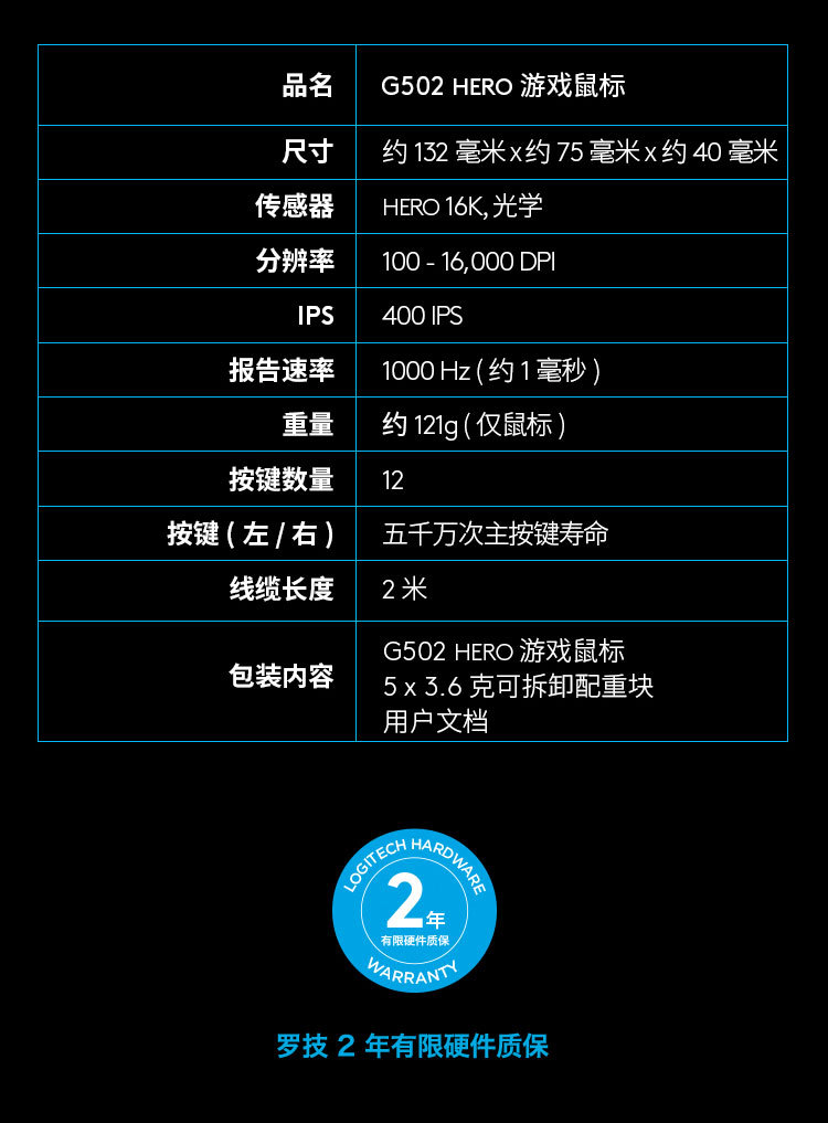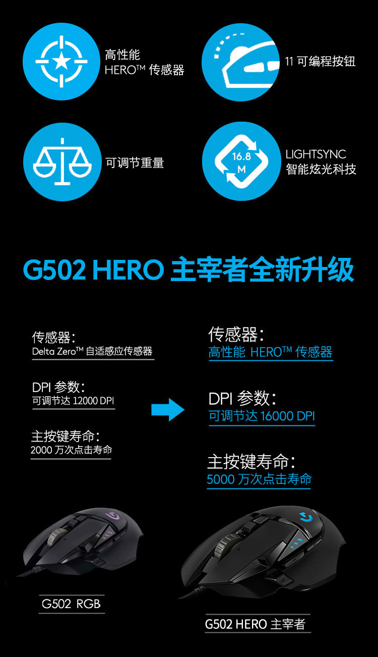 유선 Logitech G502 HERO 마스터 마우스 게임 HERO 엔진 RGB 광전스토어 가기