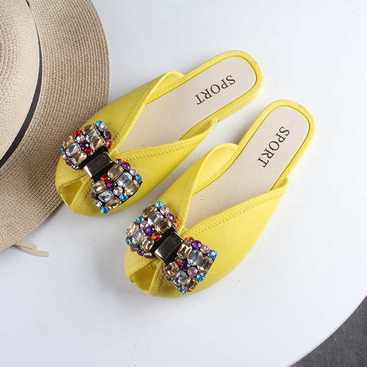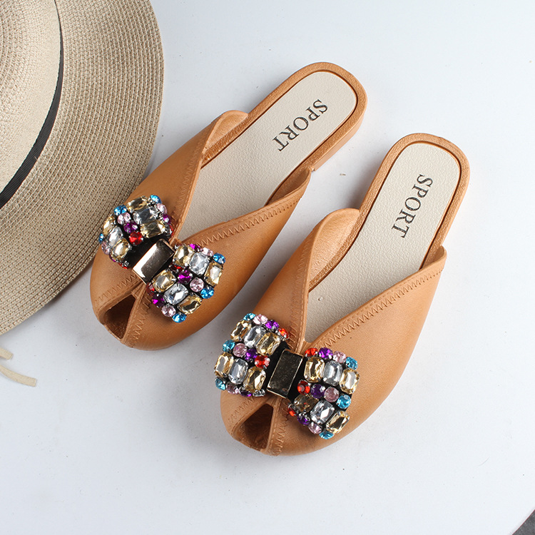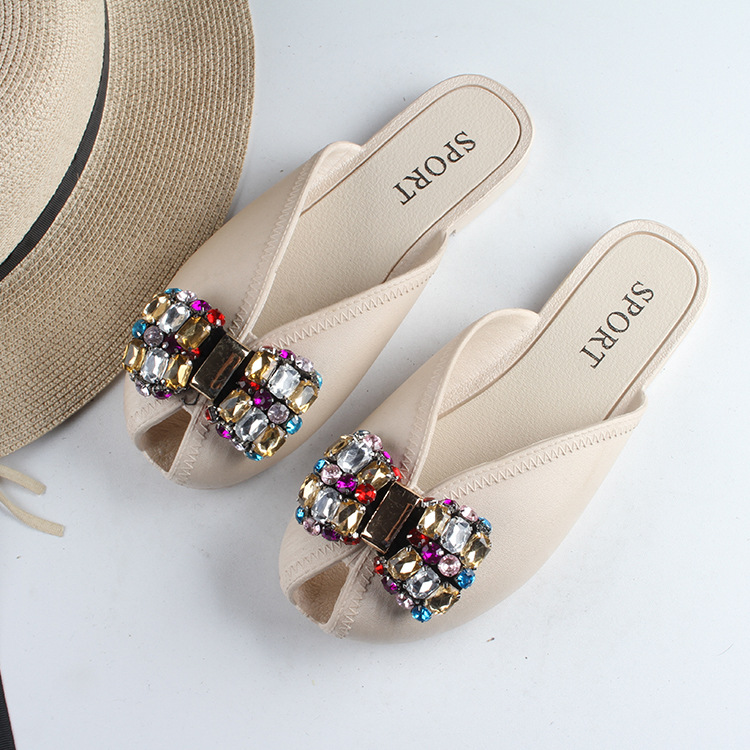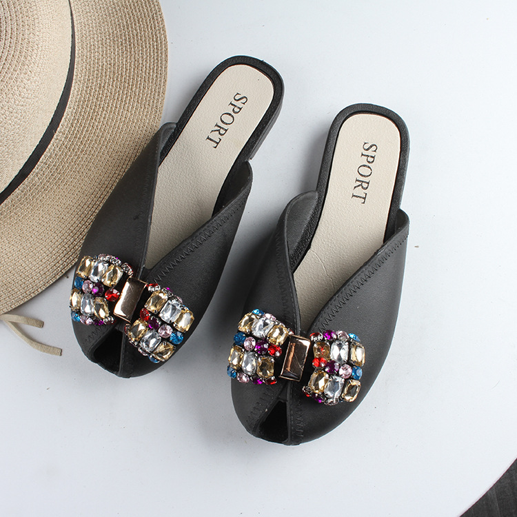 새로운 여름 Baotou 하프 슬리퍼 여성용 아웃웨어 유행 홈 다이아몬드 샌들과 슬리퍼 플랫 비치 여성 신발 물고기 발가락 신발스토어 가기