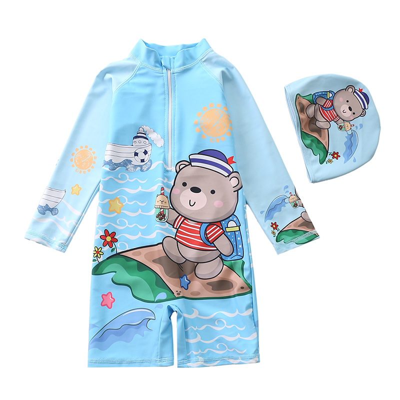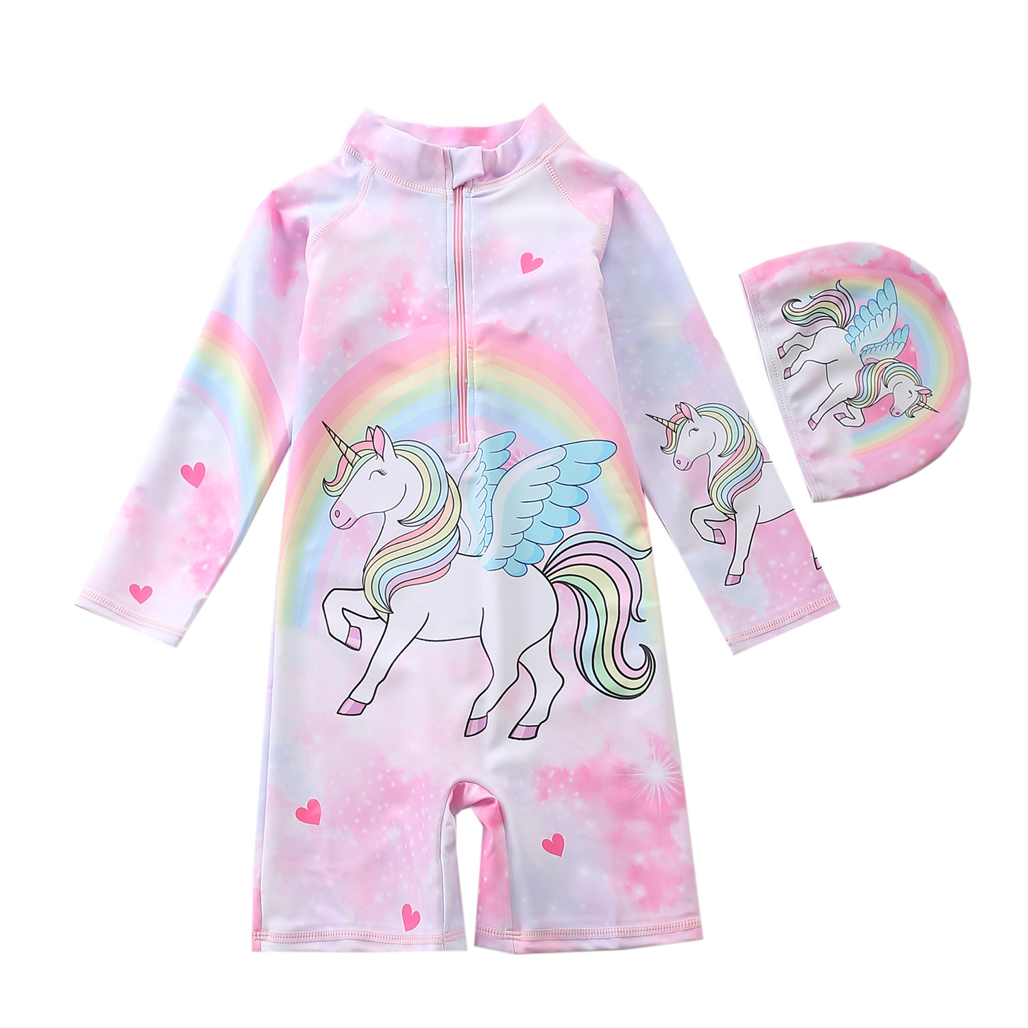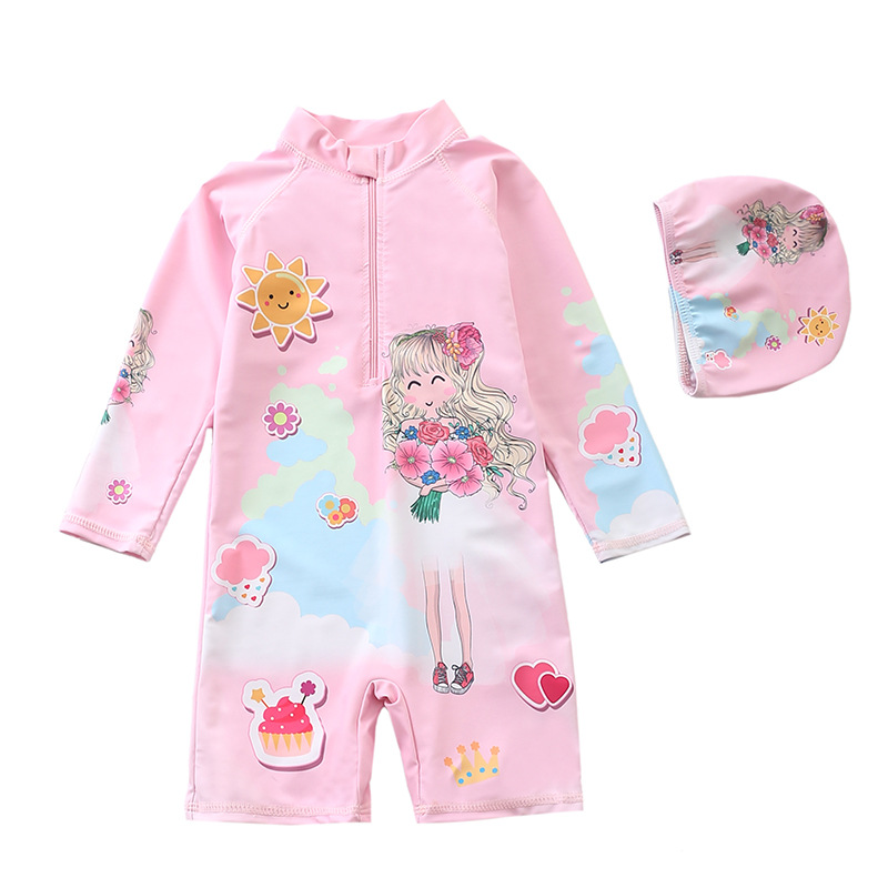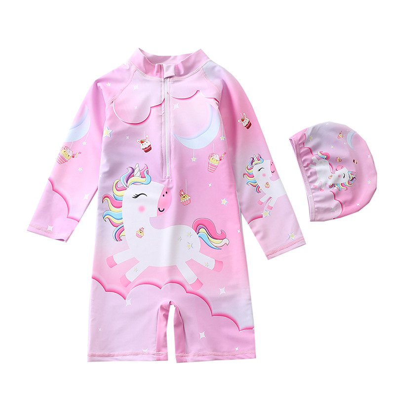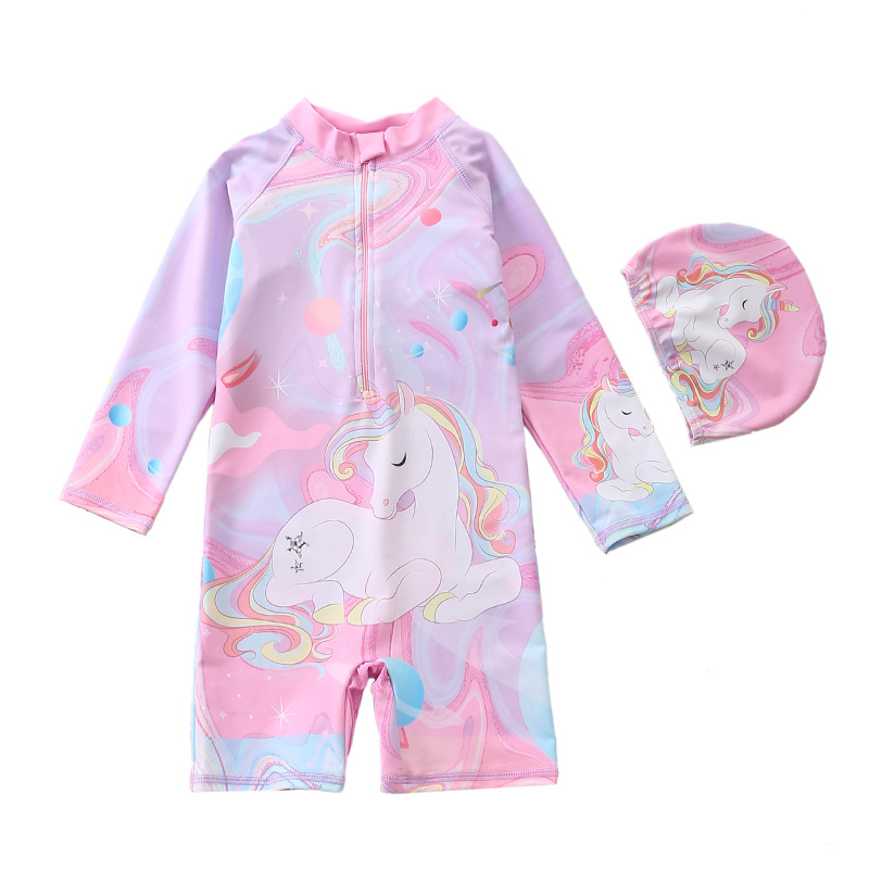 새로운 어린이 수영복 여아 원피스 수영복 유니콘 소년 긴 소매 해변 태양 보호 서핑 수영복