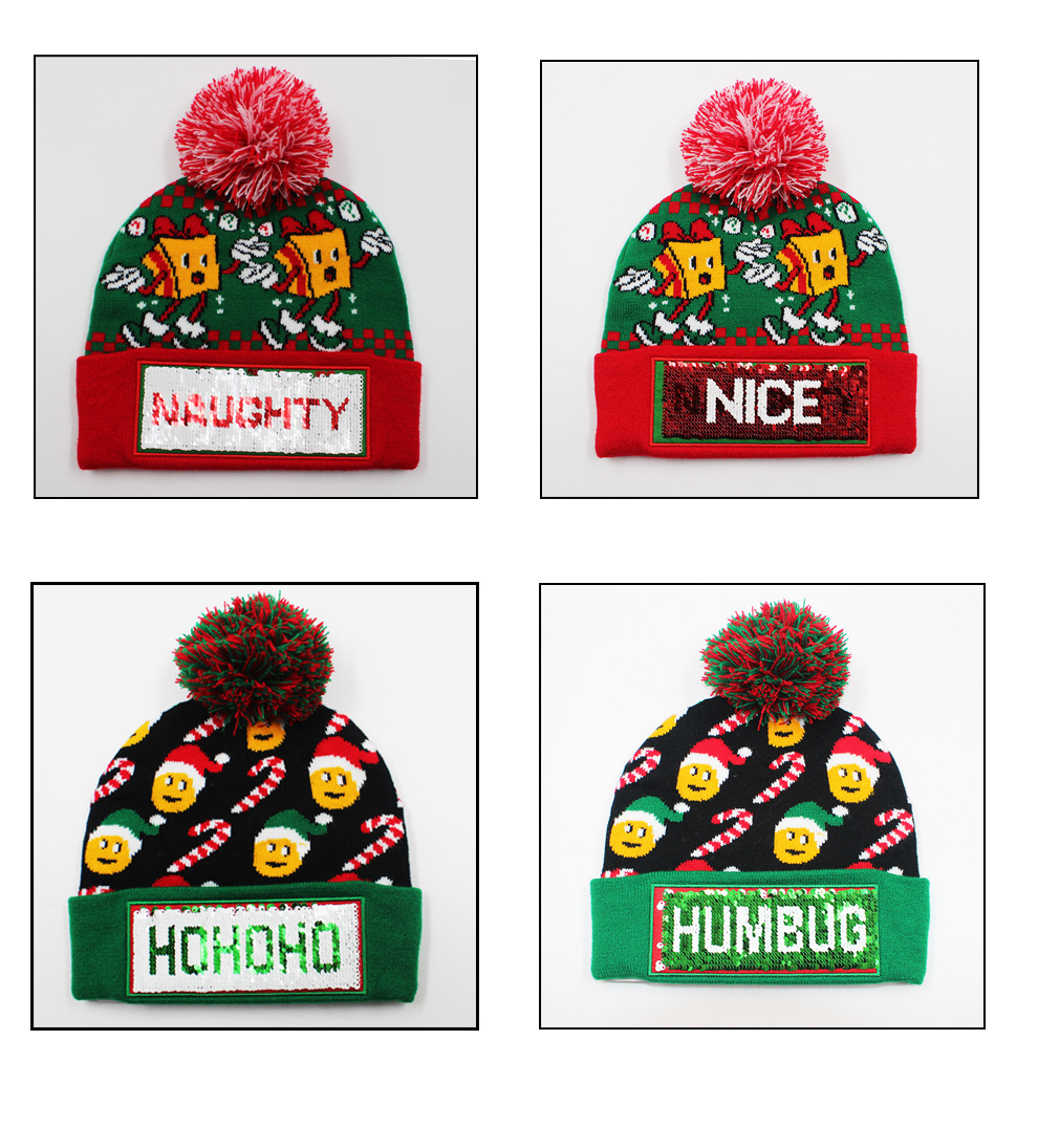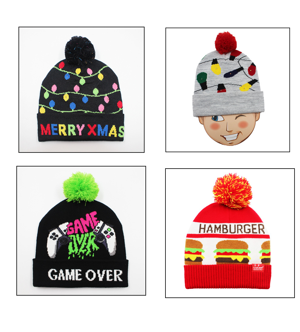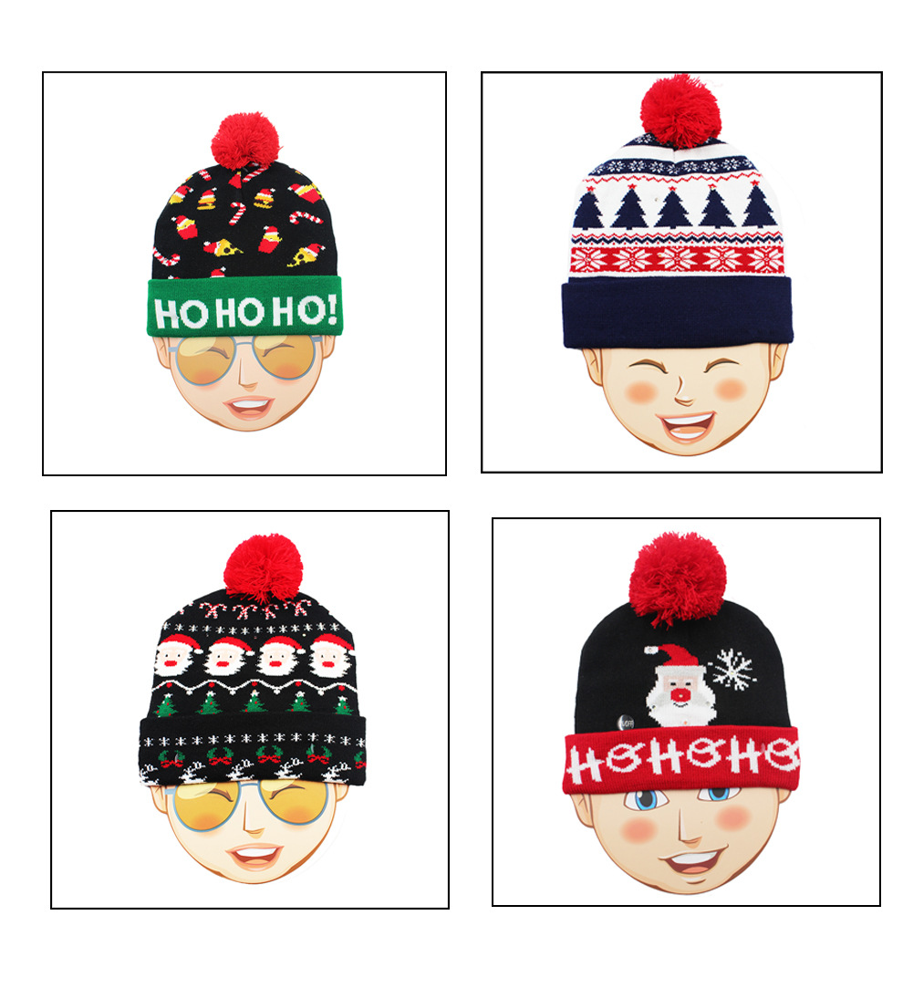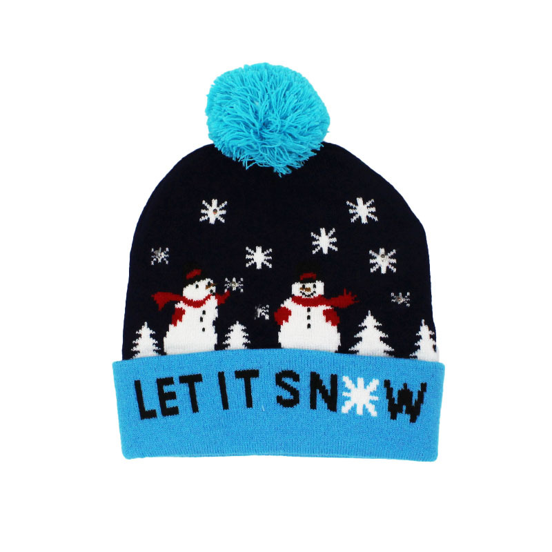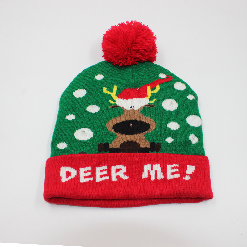 工厂现货l发光针织圣诞帽 冬季LED发光保暖针织帽 节日图案气氛帽