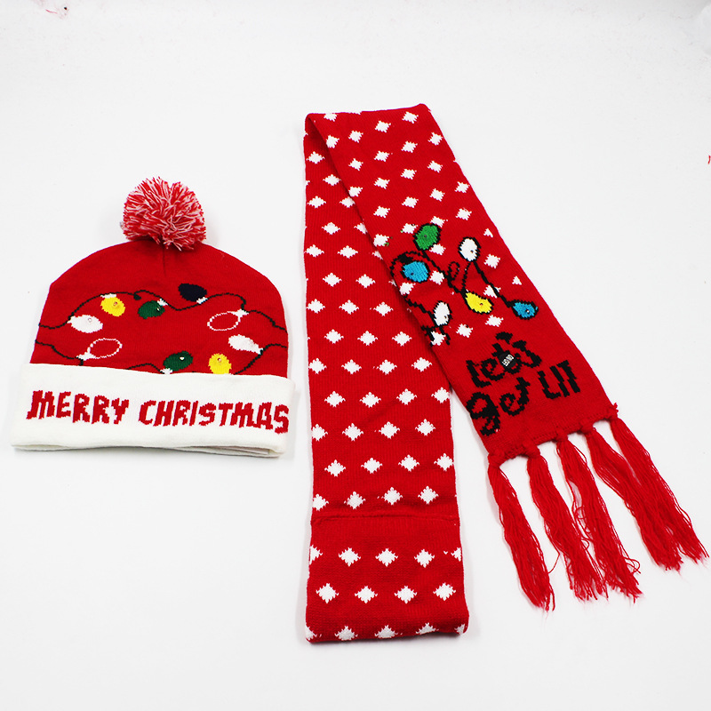 공장 스팟 플랫 탑 빛나는 니트 성인 및 어린이 모자 크리스마스 모자 겨울 LED 휴일 따뜻한 니트 모자