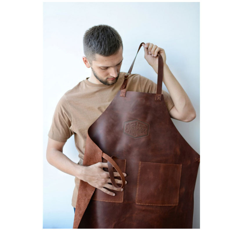 소가죽 멀티 포켓 이발사 앞치마 도구 목공 원예 다크 브라운 복고풍 목 야채 무두질 가죽 하위 인쇄 로고스토어 가기