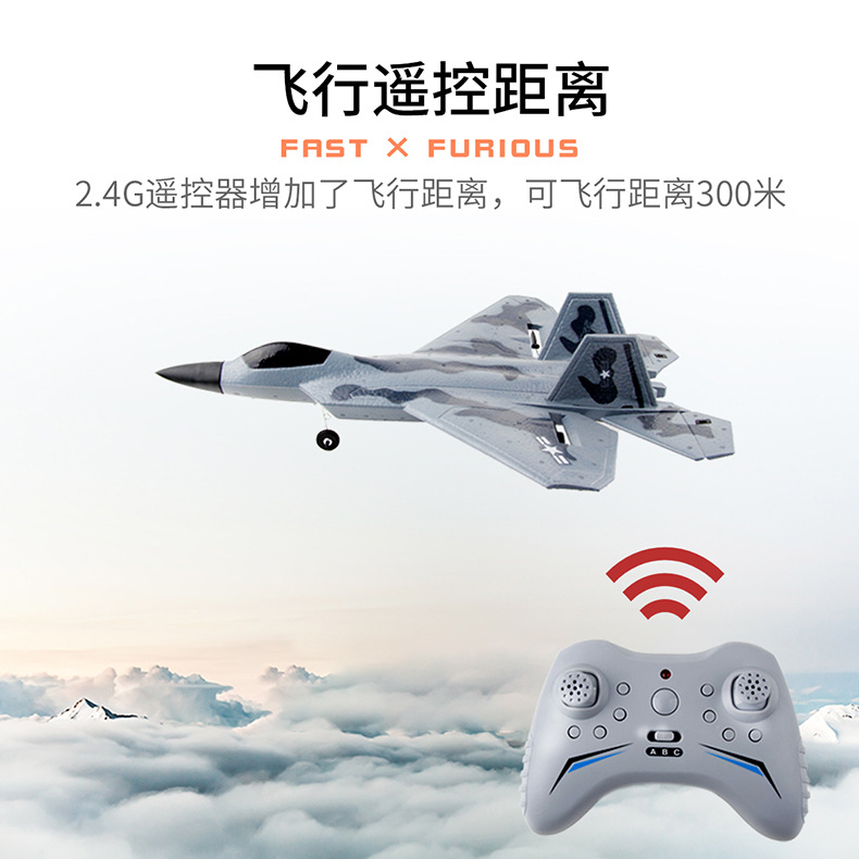 1. 根据F22战斗机同比例缩小,像真度高,四通道设计,电机差速和两个舵机控制飞机左转右转,爬升与下降,左手控制飞机油门;