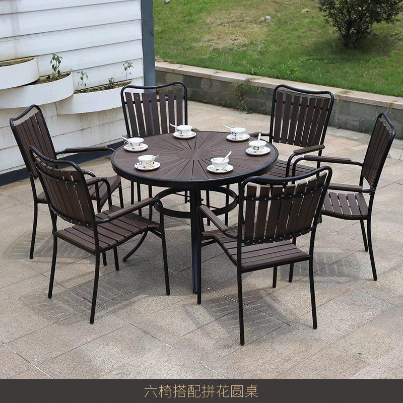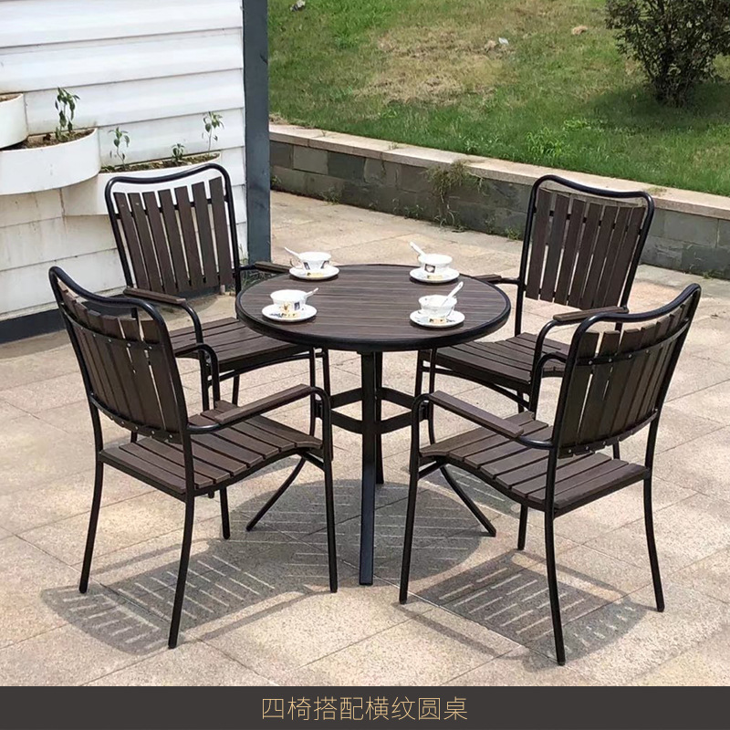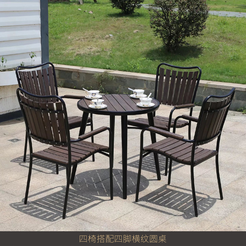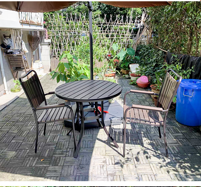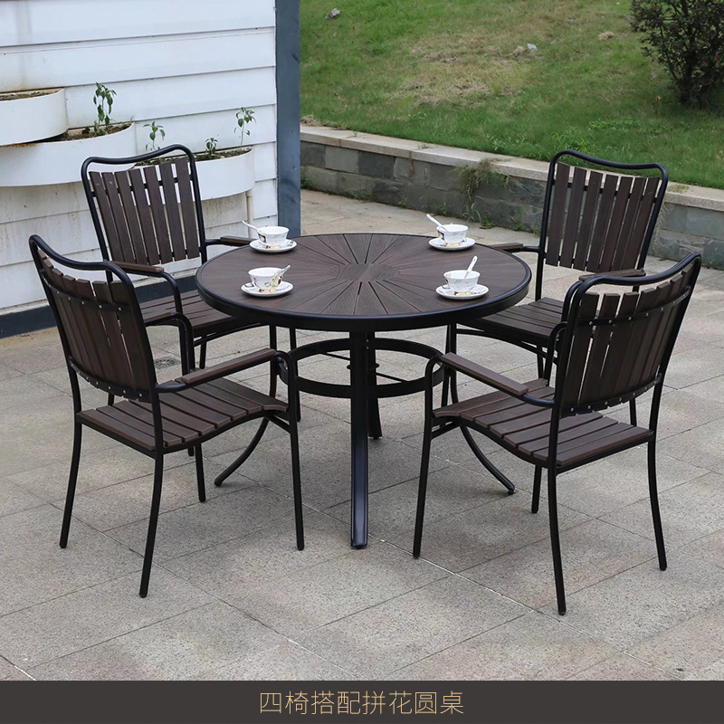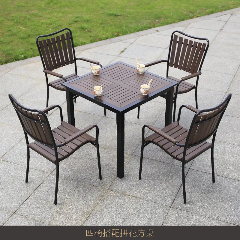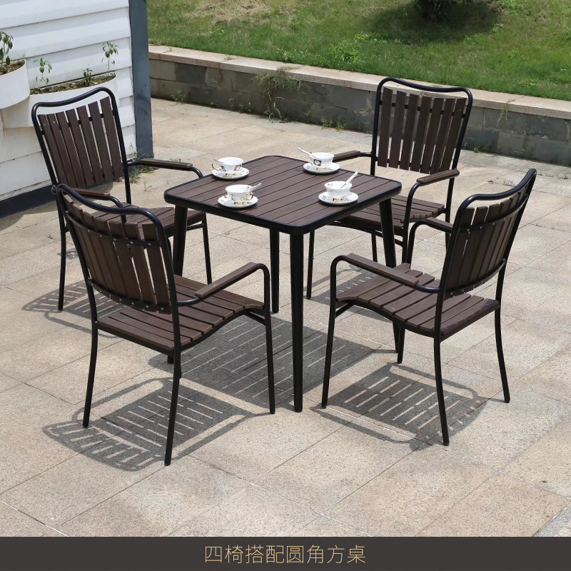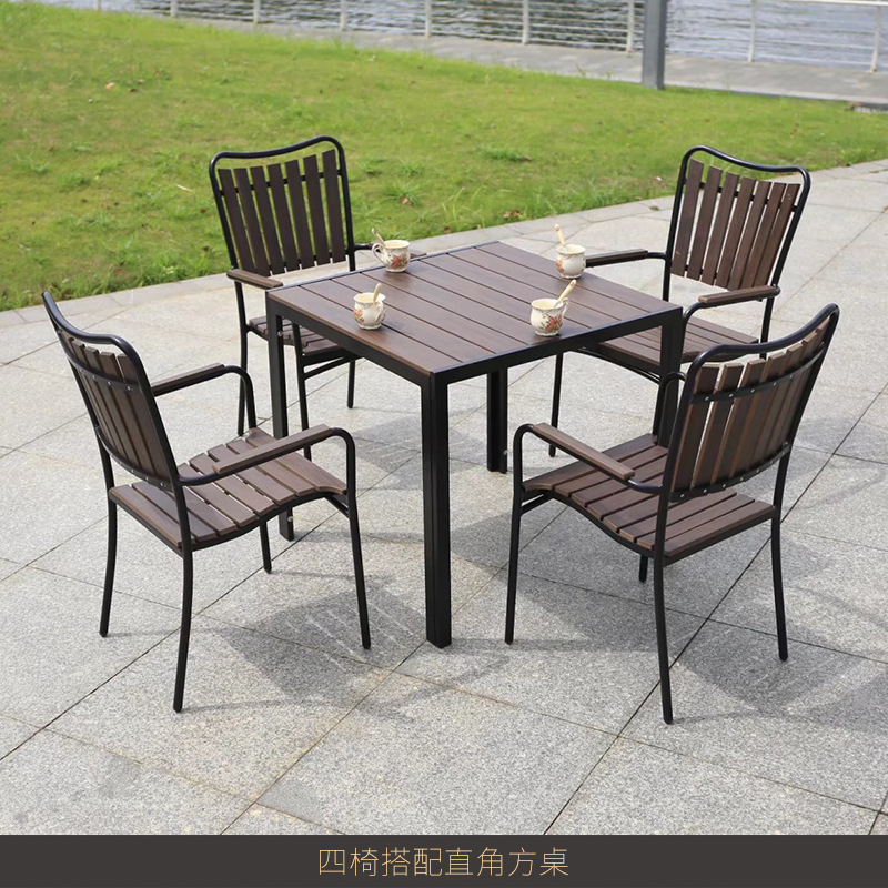 야외 가구 야외 테라스 간단한 캐주얼 플라스틱 나무 테이블과 의자 호텔 안뜰 카페 우유 차 가게 식탁 식당 의자