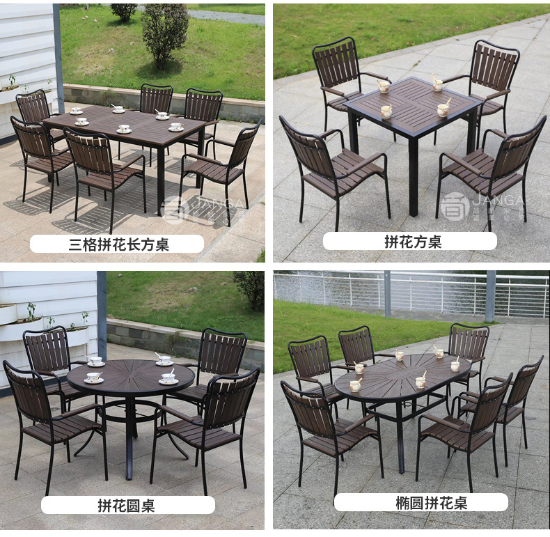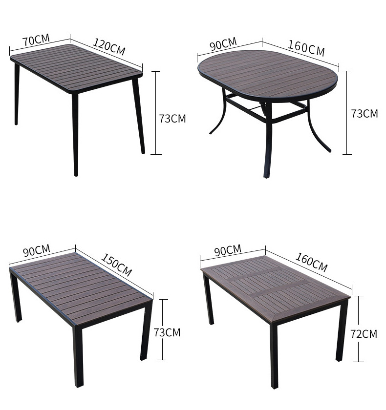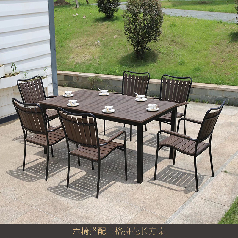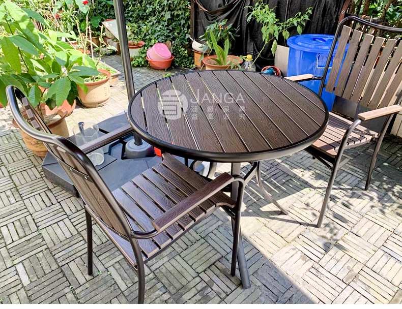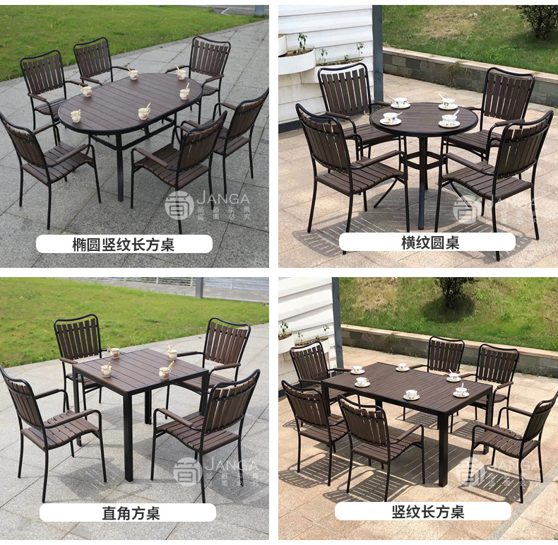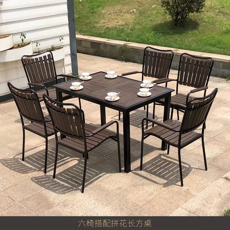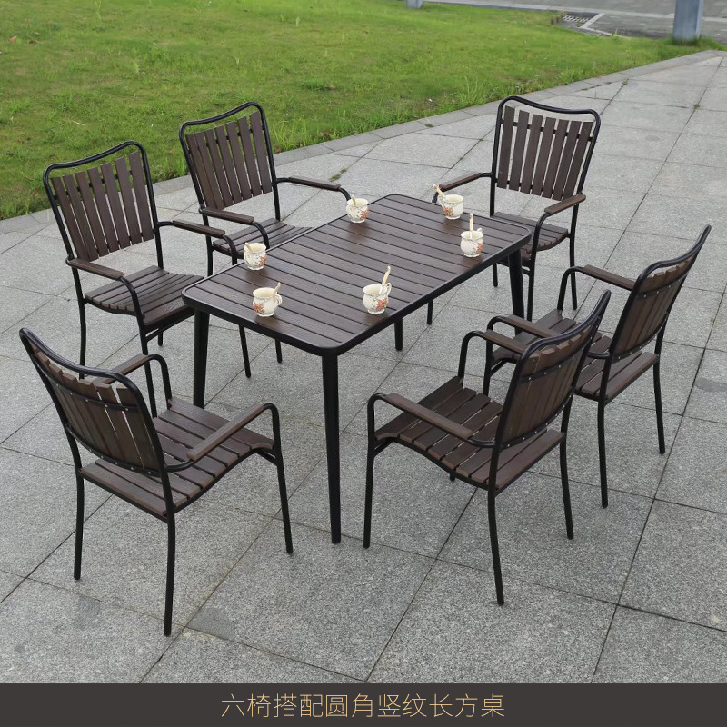야외 가구 야외 테라스 간단한 캐주얼 플라스틱 나무 테이블과 의자 호텔 안뜰 카페 우유 차 가게 식탁 식당 의자
