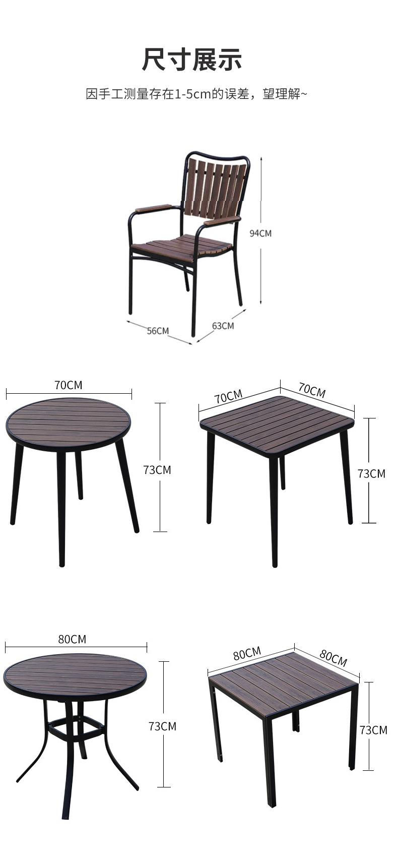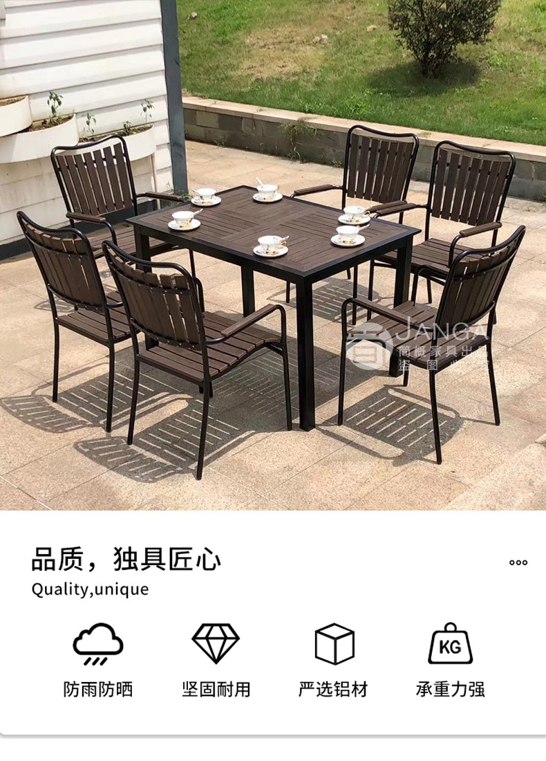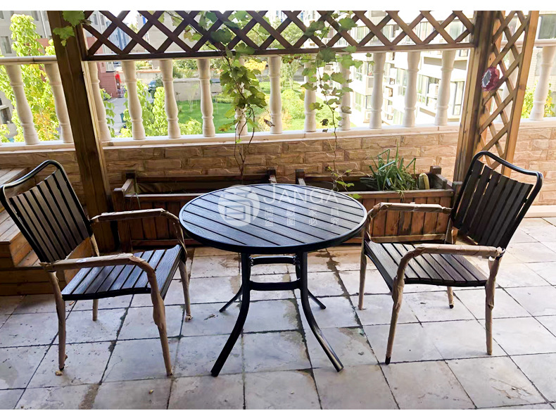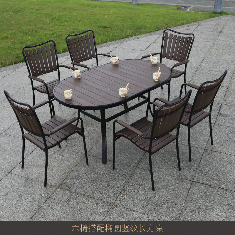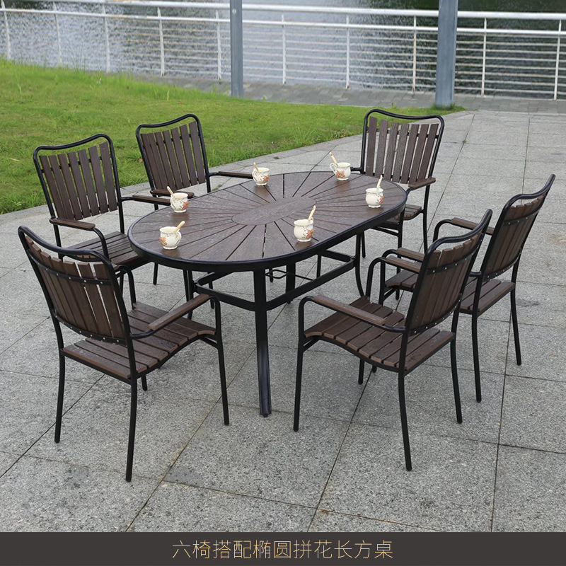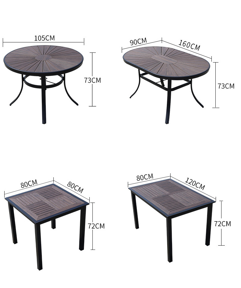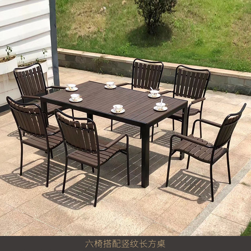 야외 가구 야외 테라스 간단한 캐주얼 플라스틱 나무 테이블과 의자 호텔 안뜰 카페 우유 차 가게 식탁 식당 의자