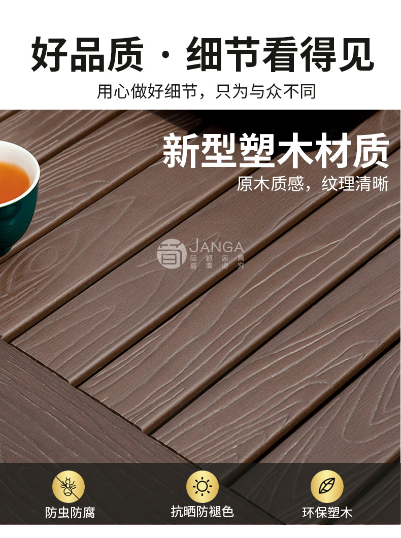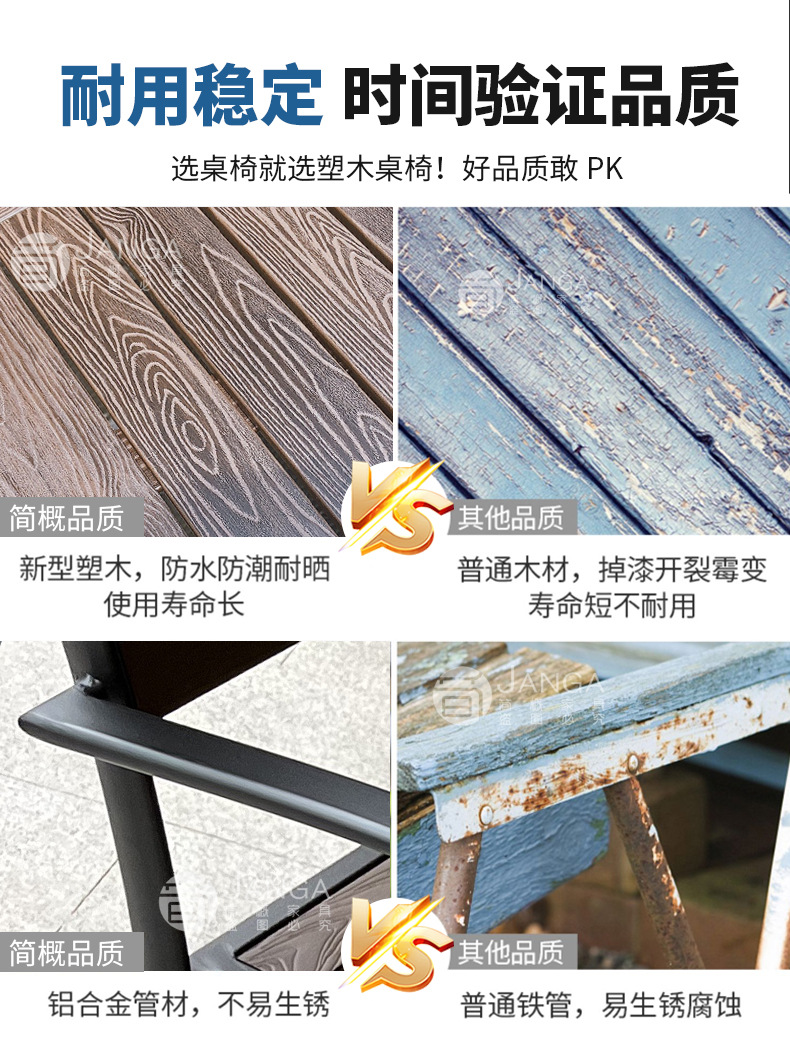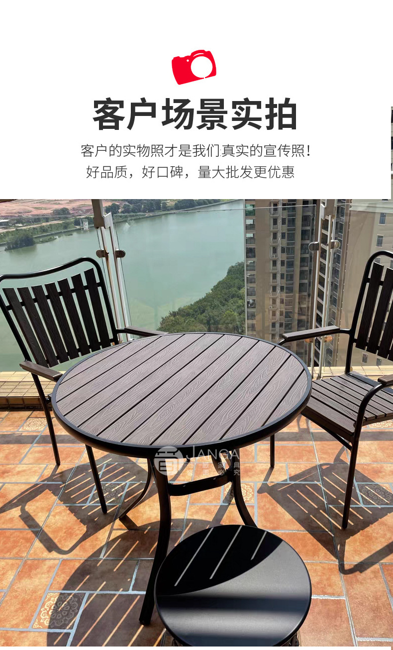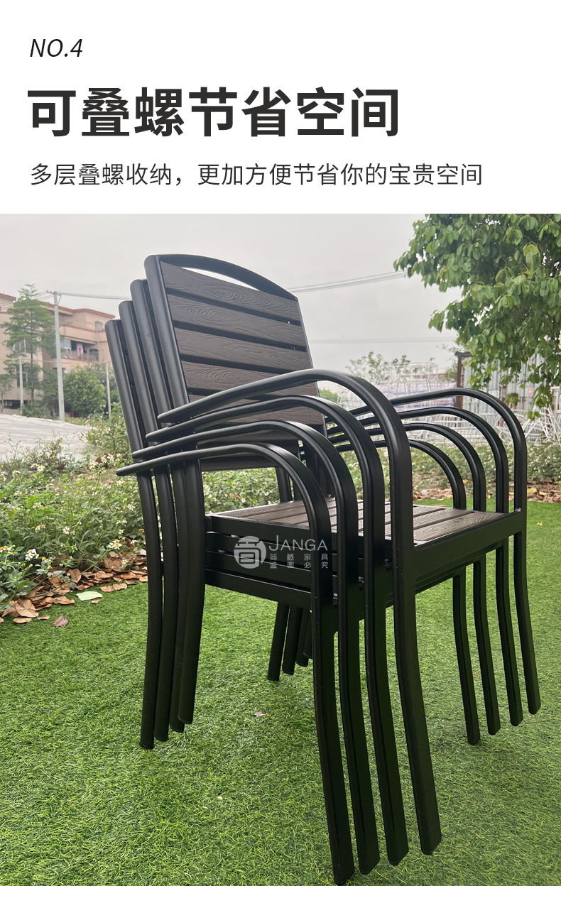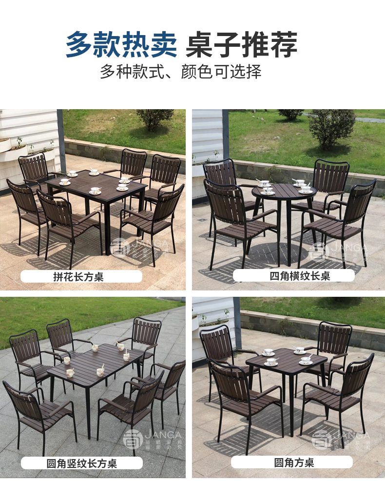 야외 가구 야외 테라스 간단한 캐주얼 플라스틱 나무 테이블과 의자 호텔 안뜰 카페 우유 차 가게 식탁 식당 의자