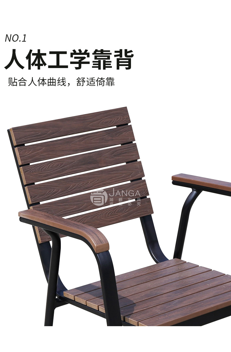 야외 가구 야외 테라스 간단한 캐주얼 플라스틱 나무 테이블과 의자 호텔 안뜰 카페 우유 차 가게 식탁 식당 의자스토어 가기