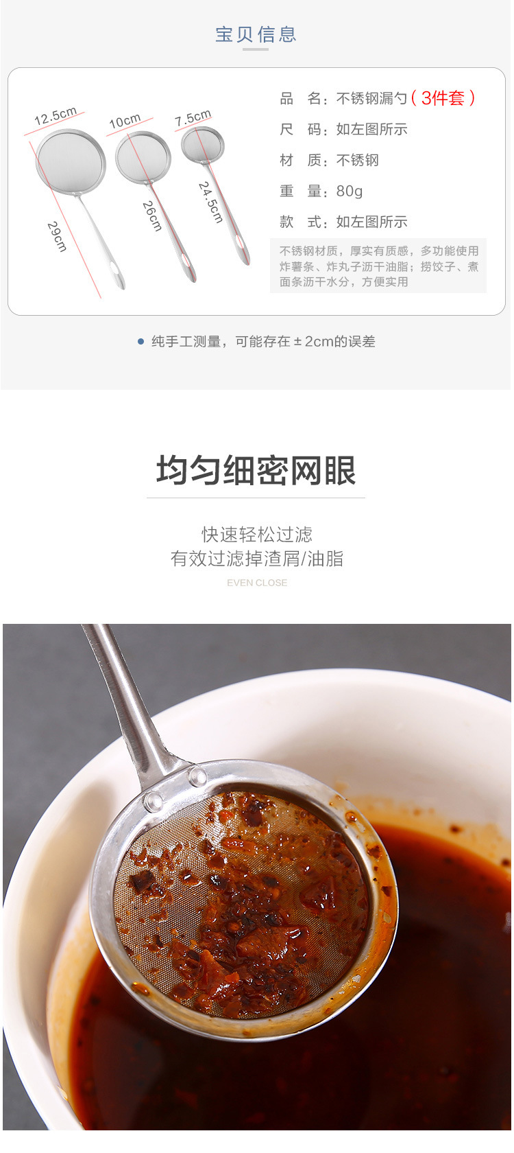 스테인레스 스틸 소쿠리 세트 필터 메쉬 체 가정용 오일 스푼 주방 오일 스트레이너 메쉬 스트레이너 스키밍 폼 낚시 유물스토어 가기