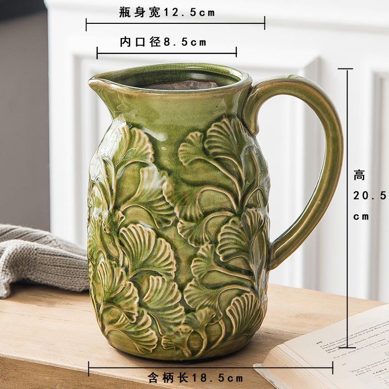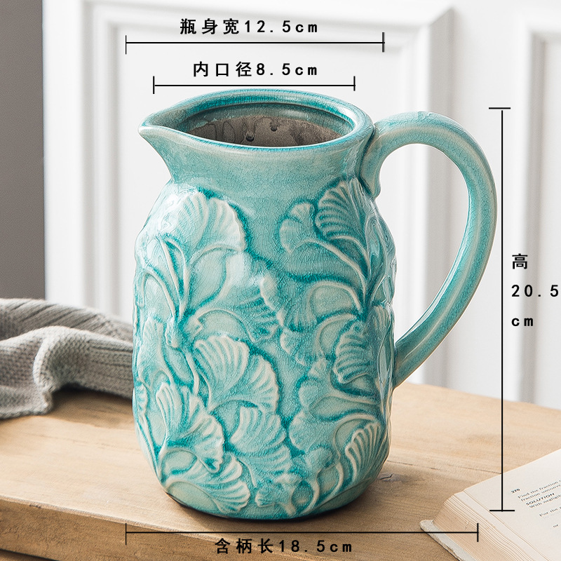 북유럽 스타일 얼음 균열 유약 단일 귀 세라믹 화분 주전자 말린 꽃 꽃꽂이 다육 질 화분 인공 꽃 가짜 꽃병