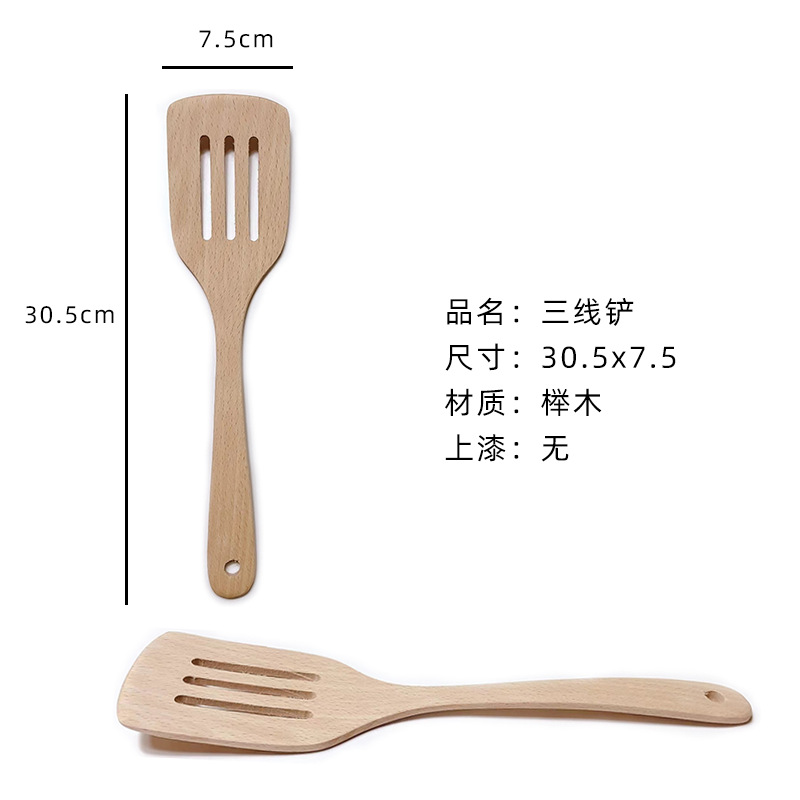공장 도매 도색되지 않은 너도밤 나무 삽 비 스틱 팬 특수 3 줄 나무 삽 긴 손잡이 부엌 볶음 삽 세트 레터링