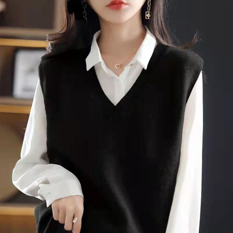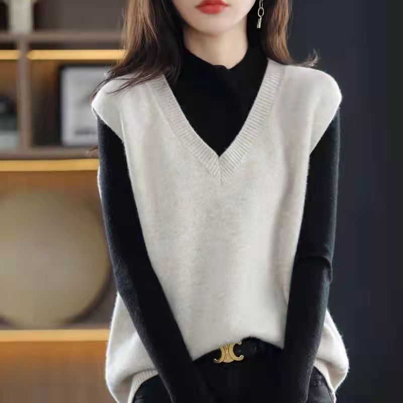 V-넥 플러스 사이즈 니트 조끼 여자의 가을과 겨울 스택 조끼 민소매 착용 캐시미어 스웨터 느슨한 스웨터 조끼스토어 가기