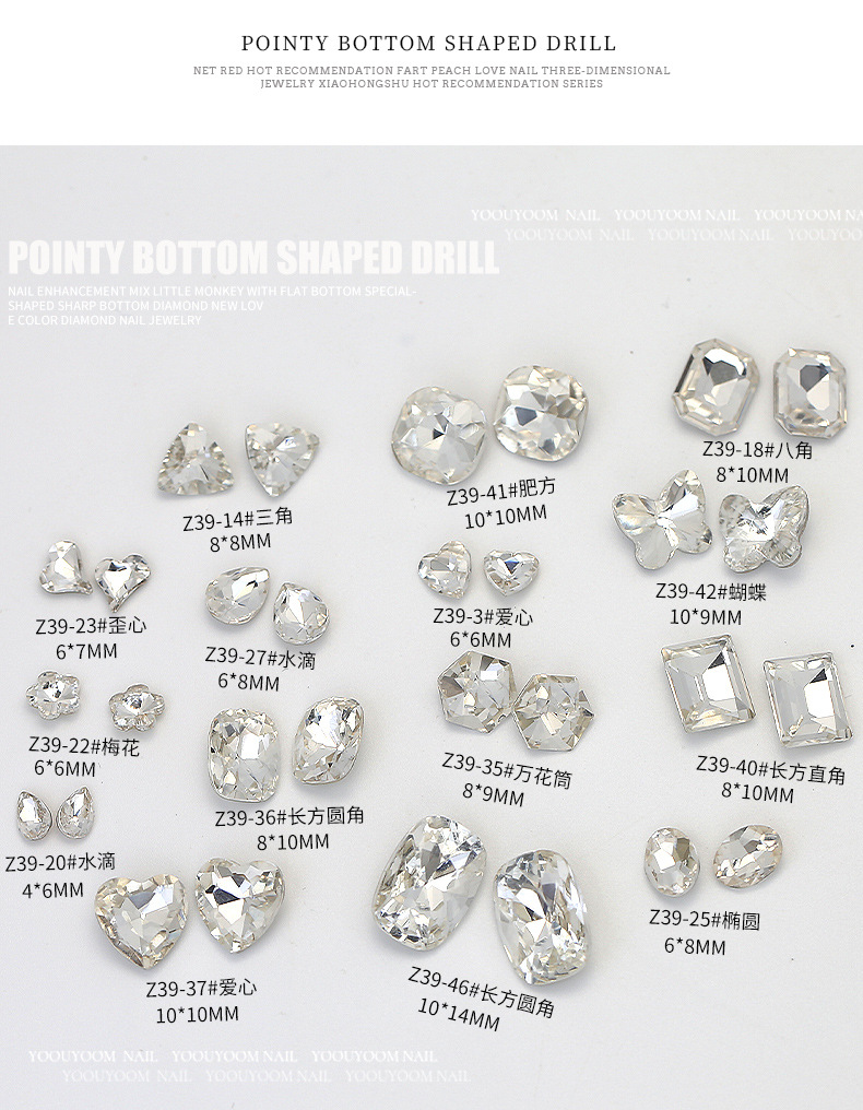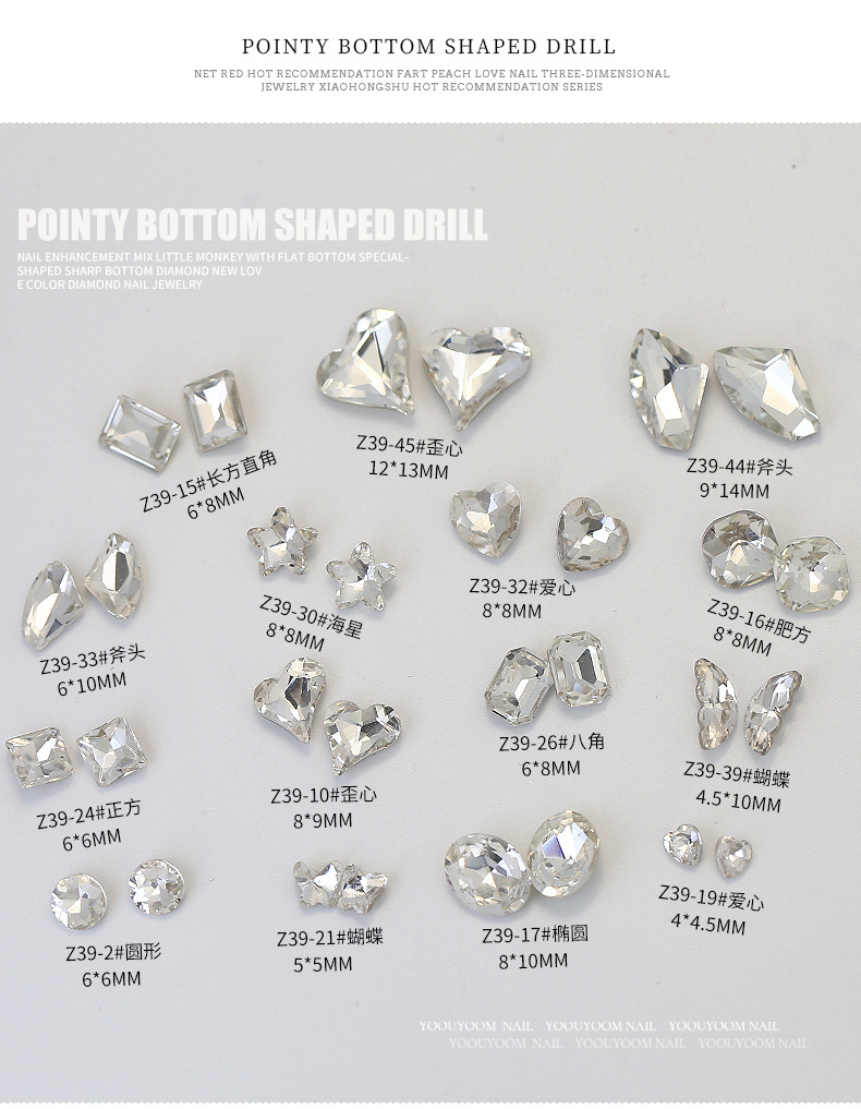 네일 드릴 뾰족한 바닥 드릴 네일 쥬얼리 사랑 드릴 네일 네일 액세서리 드릴 특수 모양의 드릴 작은 빨간 승마 책 깨진 드릴