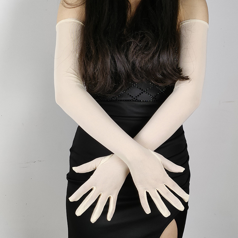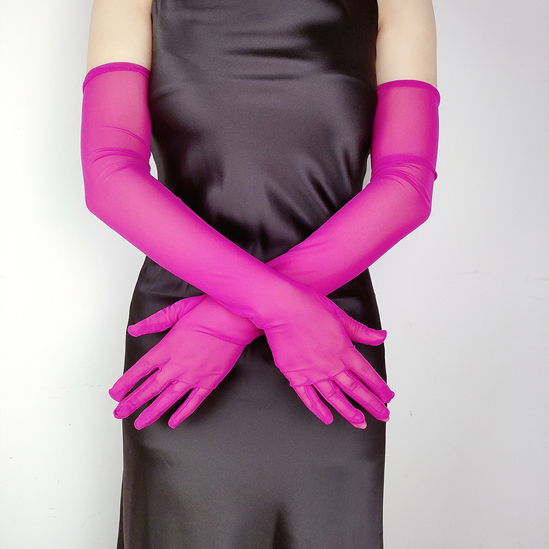 섹시한 우아한 여성의 울트라 얇은 긴 검은 실크 여름 승마 태양 보호 장갑 스트레치 레이스 메쉬 장갑