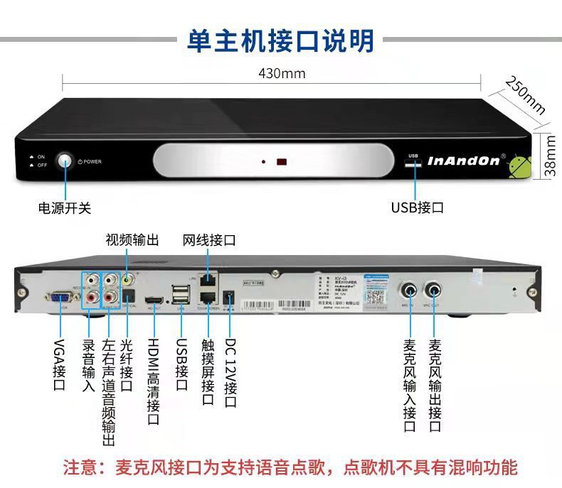 2023 InAndOn 뮤직 킹 주문기 홈 ktv 가라오케 호스트 용량 성 터치 스크린 스플릿 머신