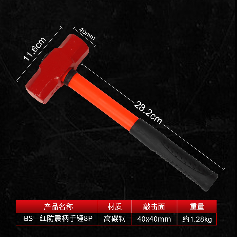 • 2327-BS-빨간색 충격 방지 핸들-핸드 해머 8P