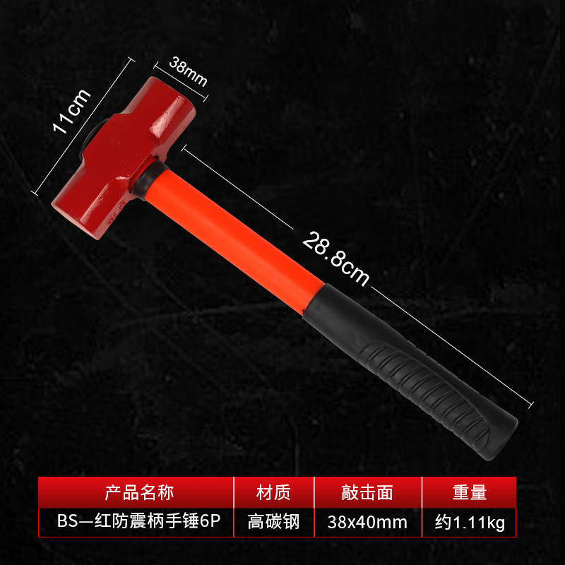• 2326-BS-빨간색 충격 방지 핸들-손 망치 6P
