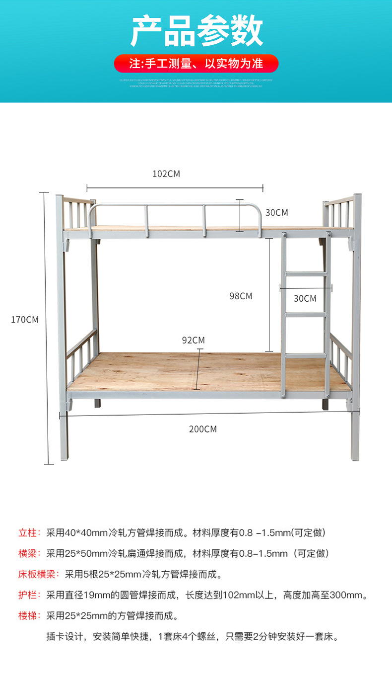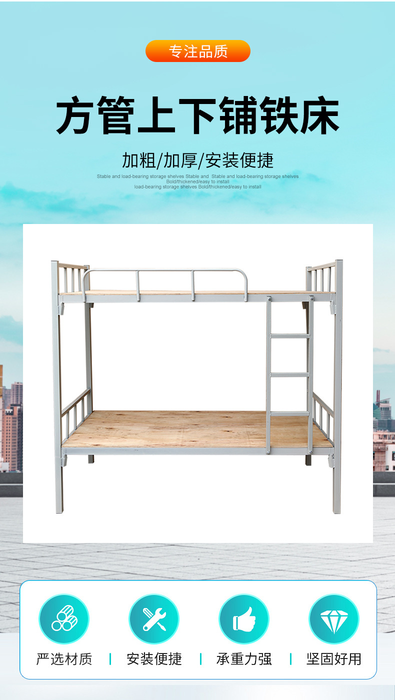 공장 학교 기숙사 아파트 철제 침대 상하 이층 철제 침대 흰색 사각형 튜브 이중 철제 침대 공장 도매