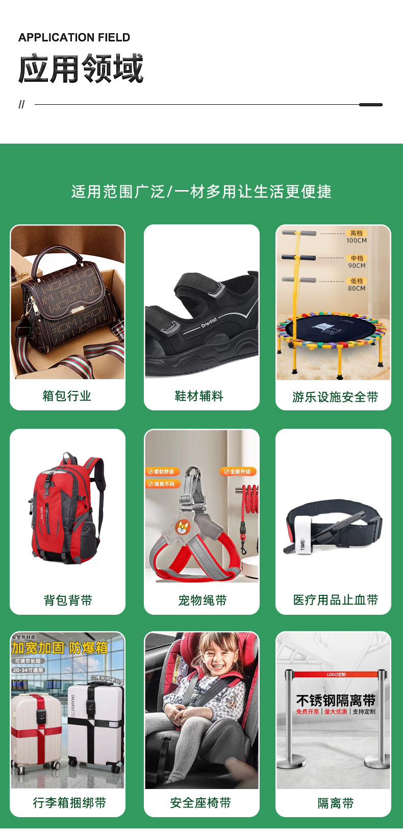 학교 가방 웨빙 아기 안전 벨트 스트랩 폴리 프로필렌 웨빙과 블랙 라이트 원사 비드 PP 비드 1 인치 비드