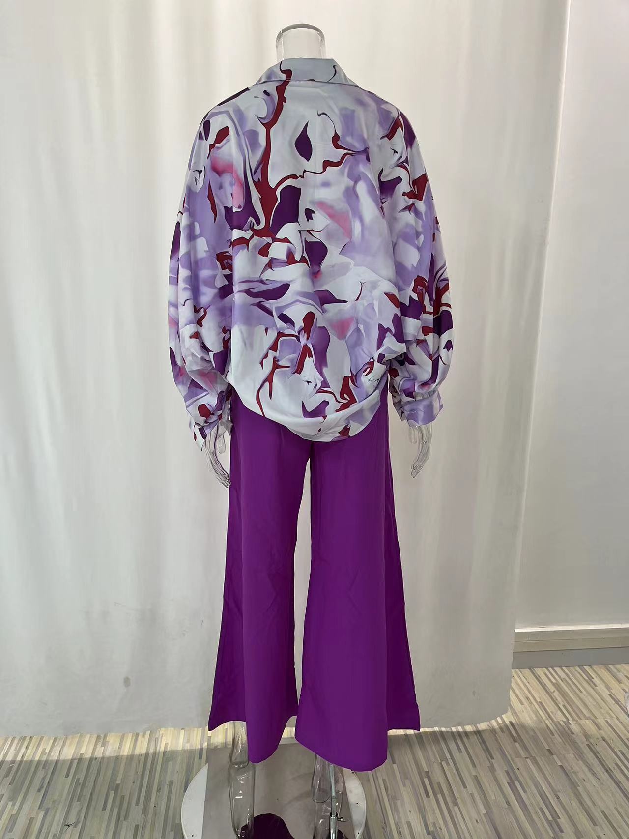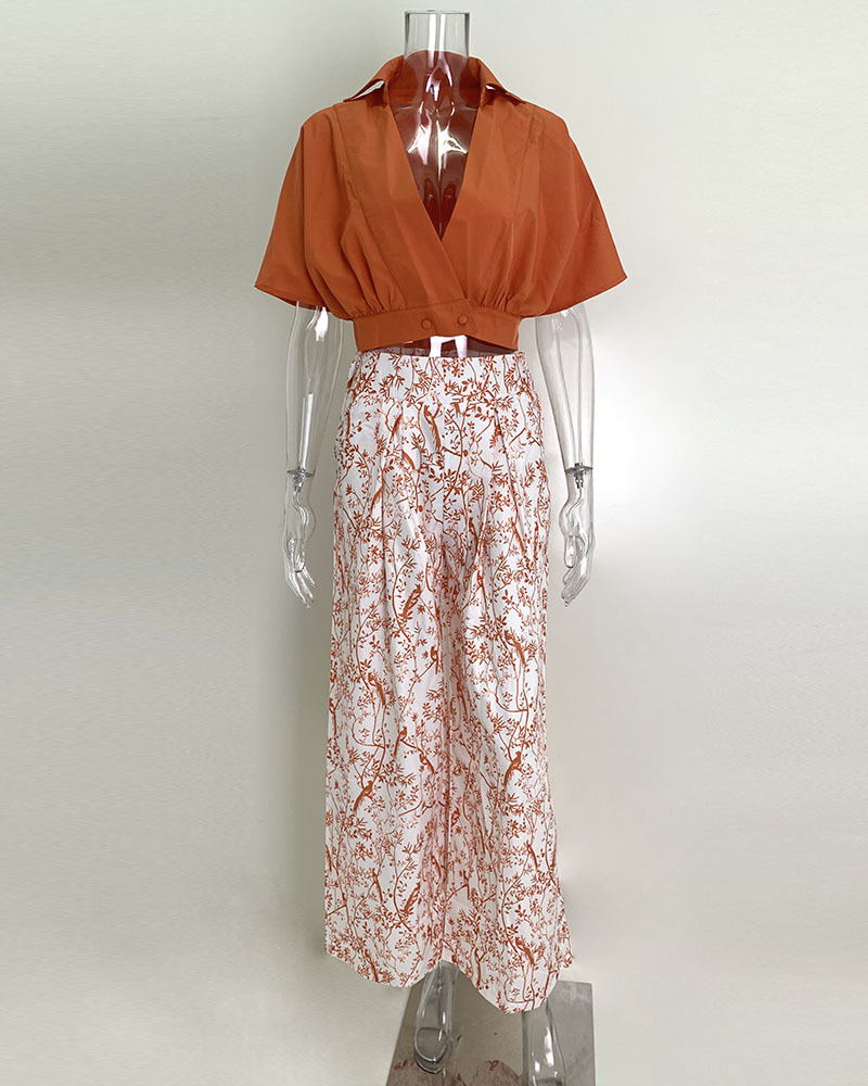 2026년 봄 신상 유럽 및 미국 수출 여성복 프린트 셔츠, 우아한 와이드 팬츠, 패셔너블한 캐주얼 세트