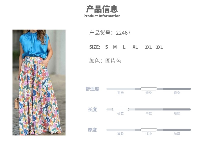 2026년 봄 신상 유럽 및 미국 수출 여성복 프린트 셔츠, 우아한 와이드 팬츠, 패셔너블한 캐주얼 세트스토어 가기