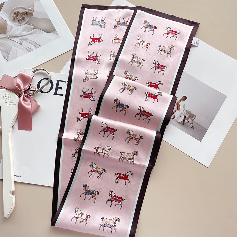 샴페인 말 머리 새틴 실크 롱 리본 여성용 스카프 항저우 실크 얇은 좁은 스카프 뽕나무 실크 리본