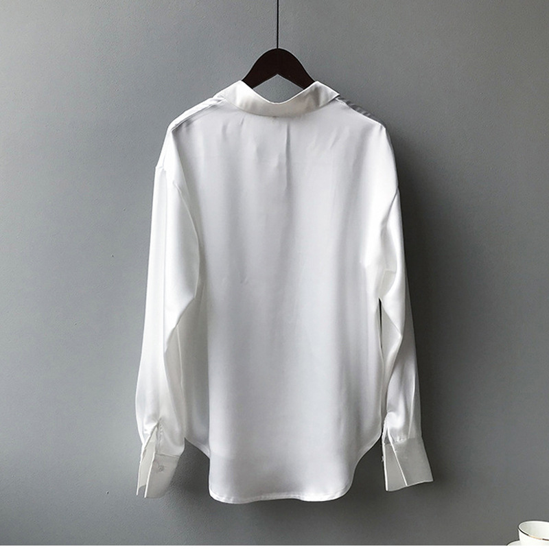 Осенняя модная атласная шелковая рубашка на пуговицах, винтажная блузка, женская белая, женская,