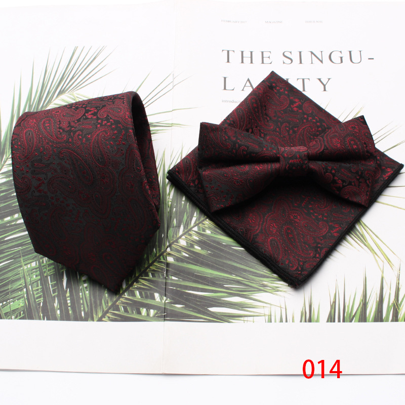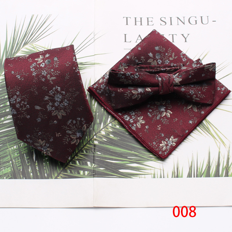버건디 빈티지 남성 넥타이 넥타이 스퀘어 스카프 3 피스 비즈니스 패션 웨딩 신랑 신랑 넥타이 세트