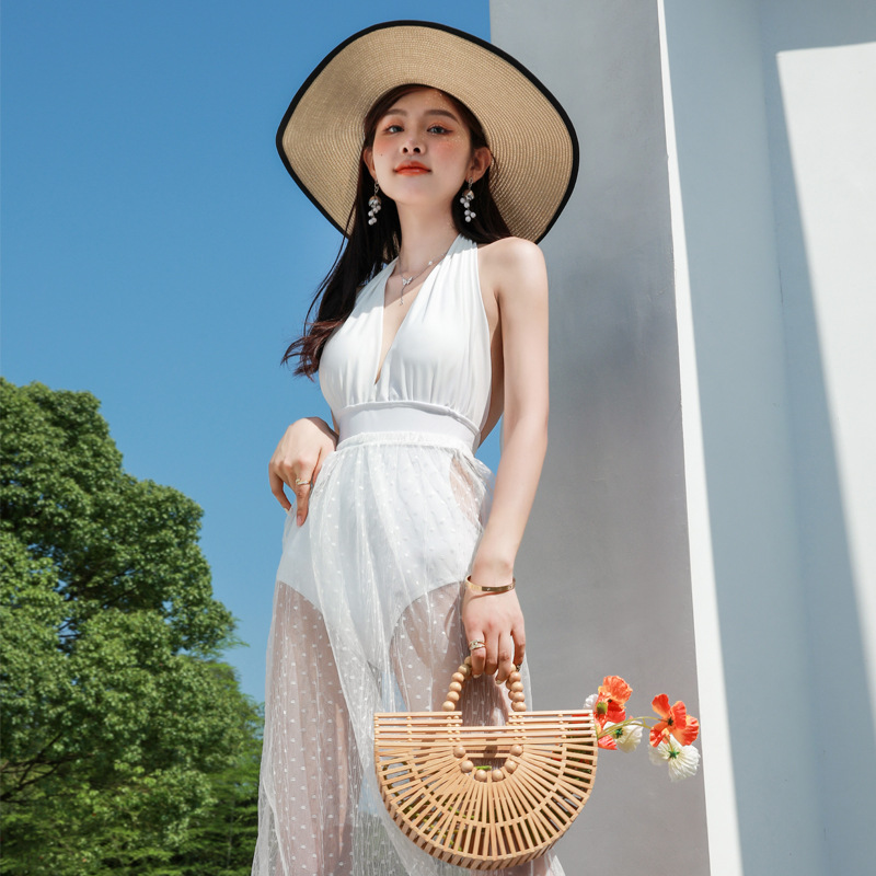 여름 여성 수영복 순수한 정욕 스타일 2025 새로운 인기 인터넷 연예인 ins 한국어 버전 섹시한 등이없는 슬리밍 온천 수영복스토어 가기