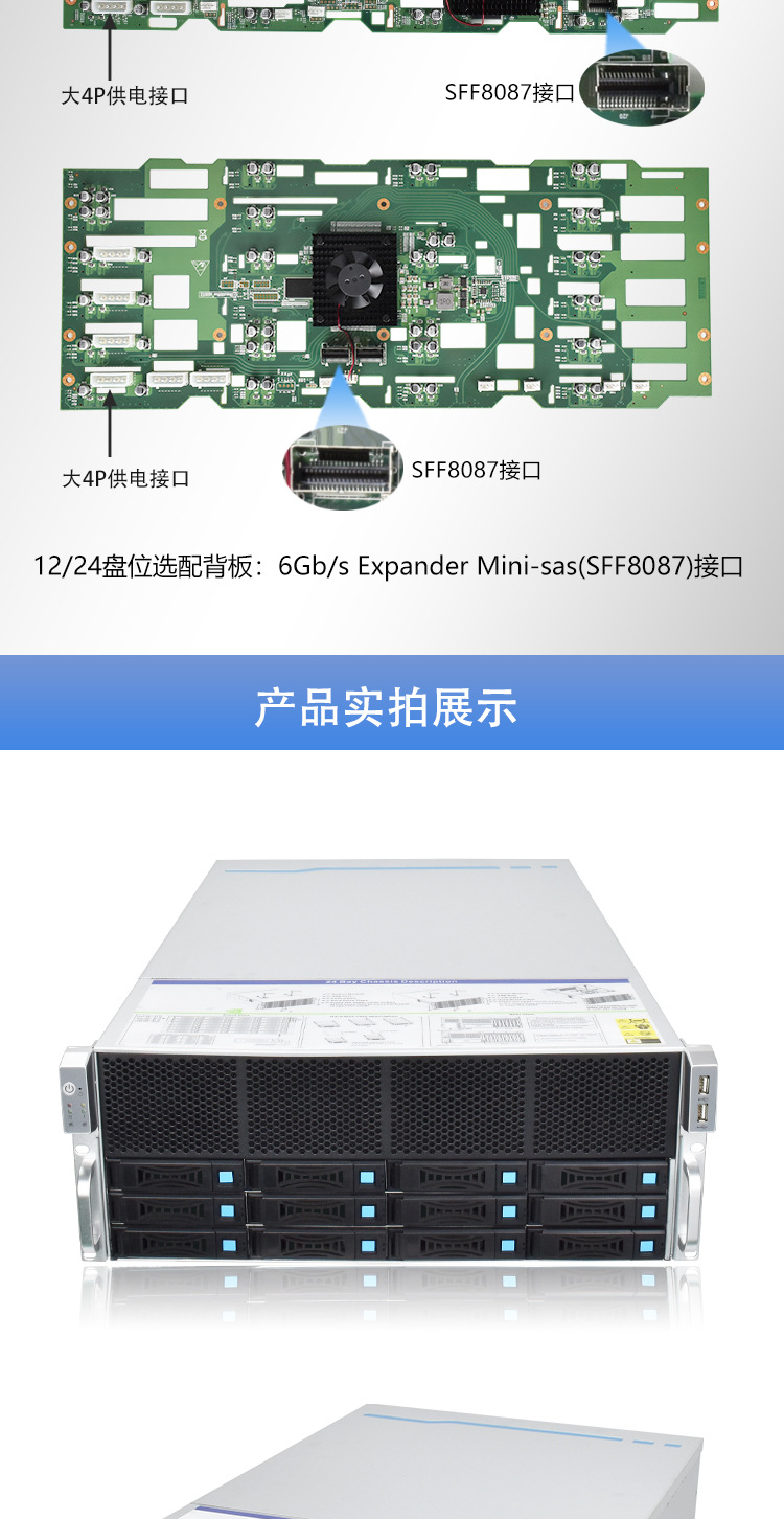 4U 랙 장착형 12디스크 24디스크 핫스왑 가능 멀티 하드 디스크 스토리지 IPFS 종합 미디어 서버 NAS 섀시