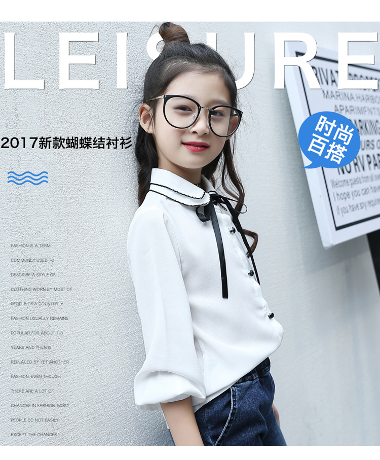 여아 셔츠 어린이 중학생 봄과 가을 레이스 옷깃 얇은 쉬폰 긴 소매 셔츠 베이스 셔츠스토어 가기