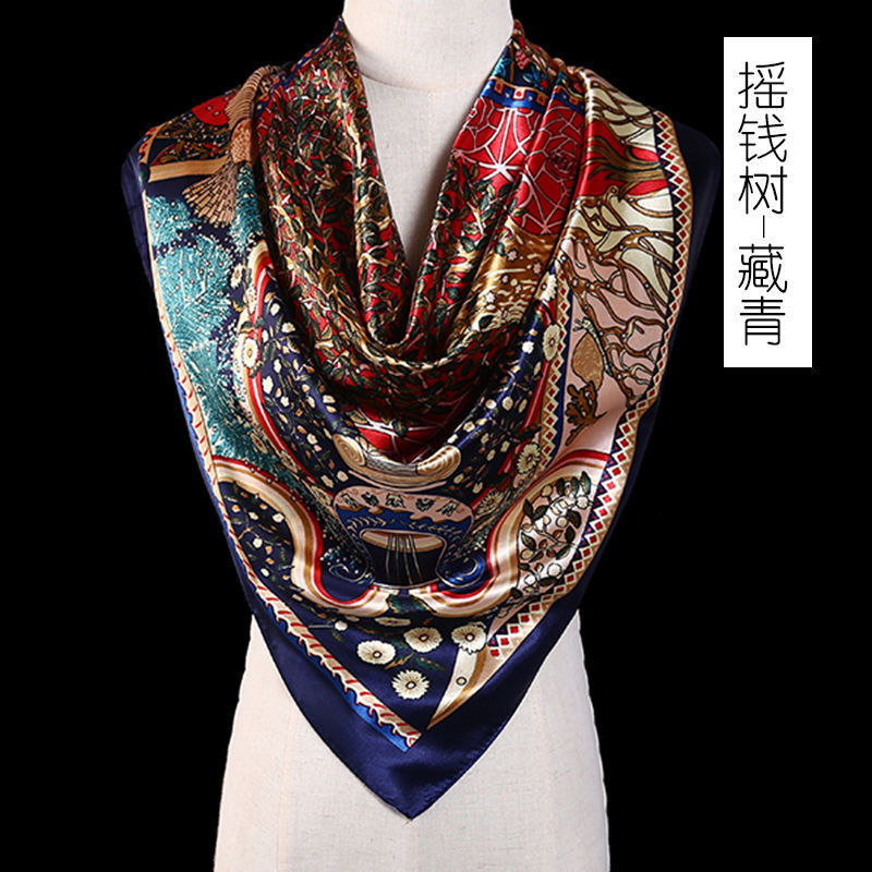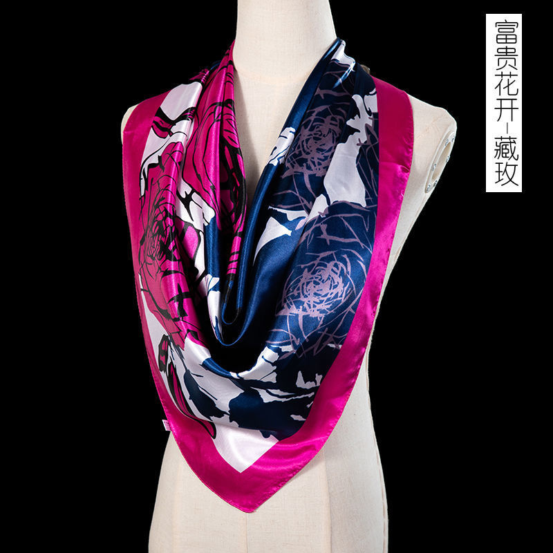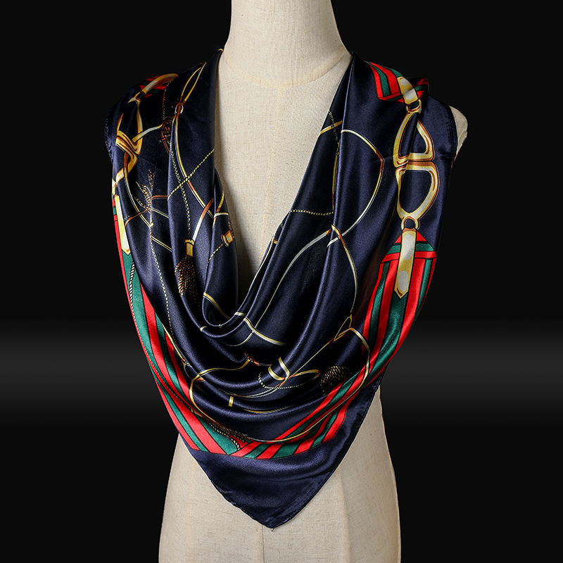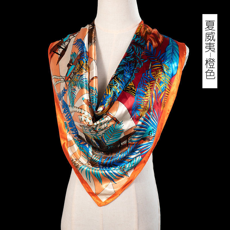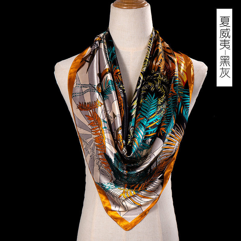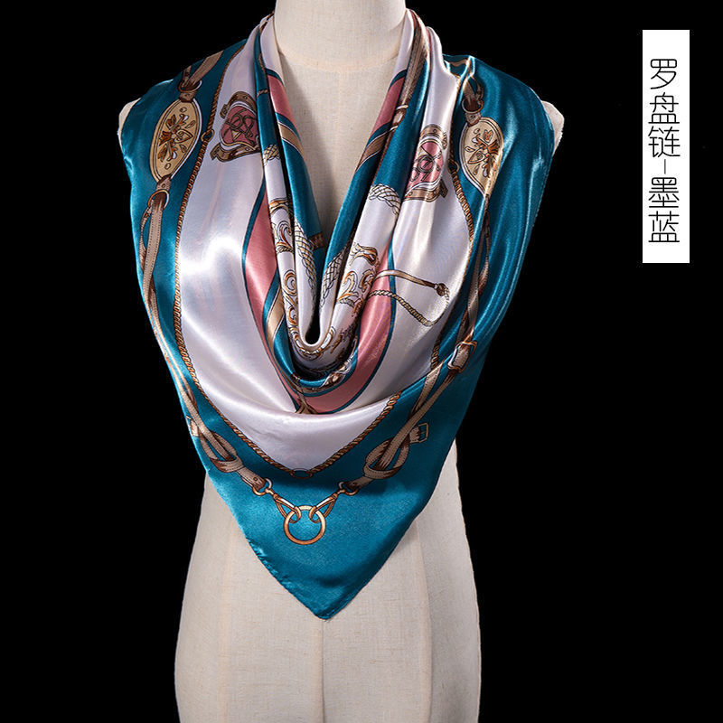 새로운 숙녀 가을과 겨울 패션 모조 실크 90*90 대형 사각형 스카프 인쇄 머리 스카프 따뜻한 여름 태양 보호