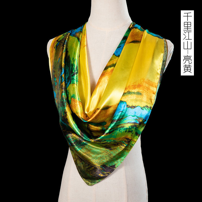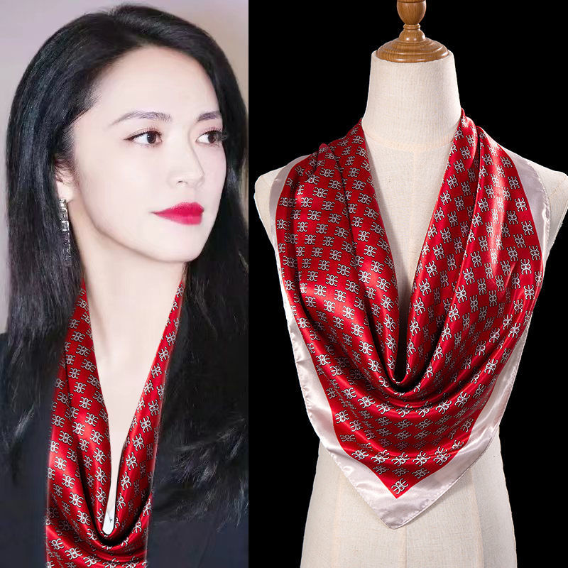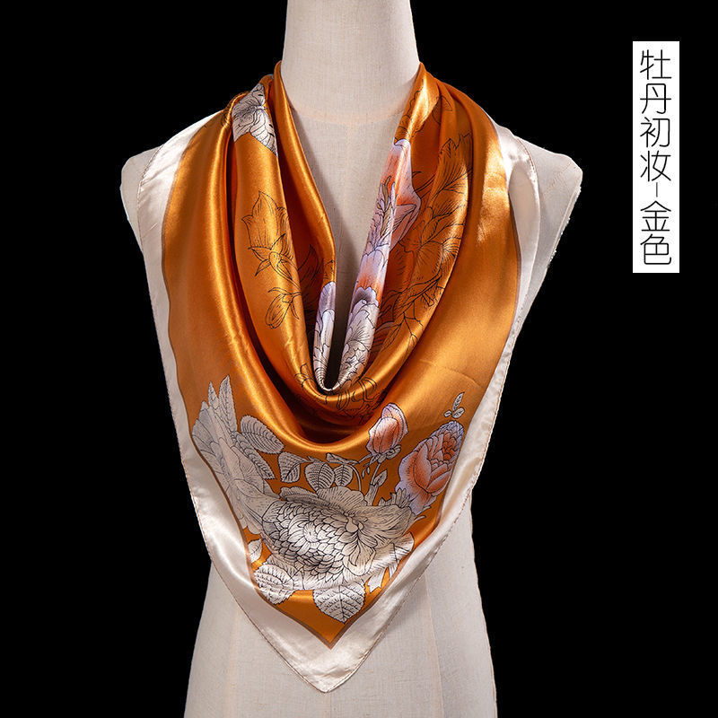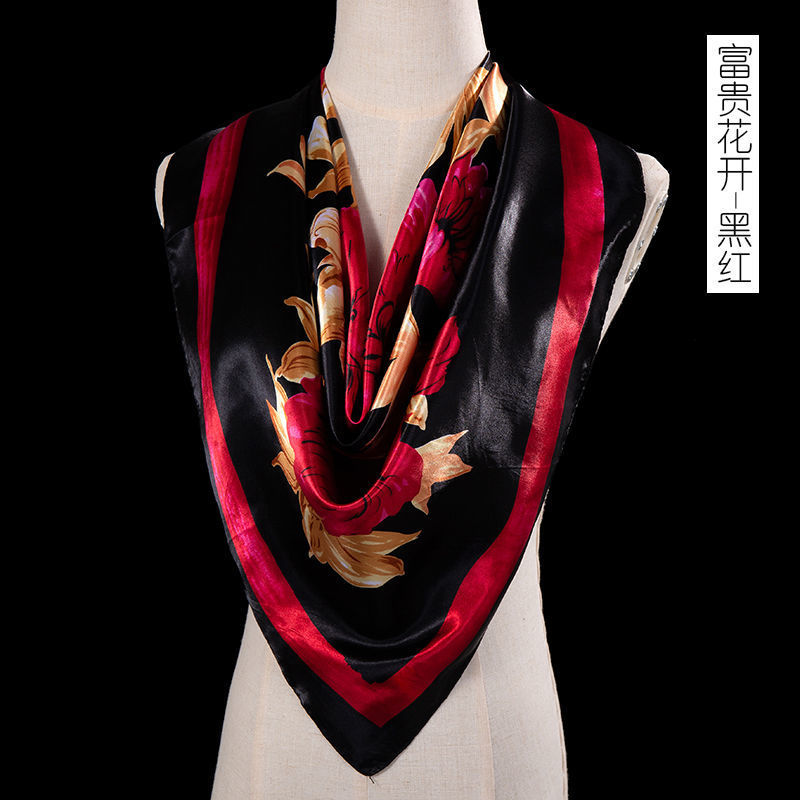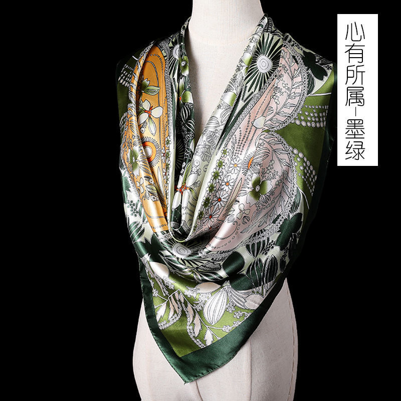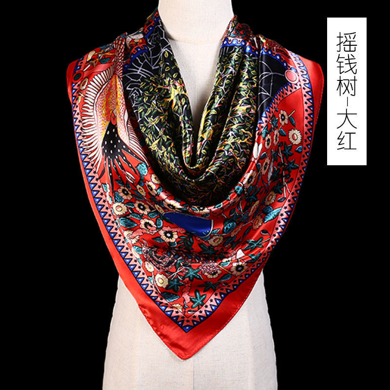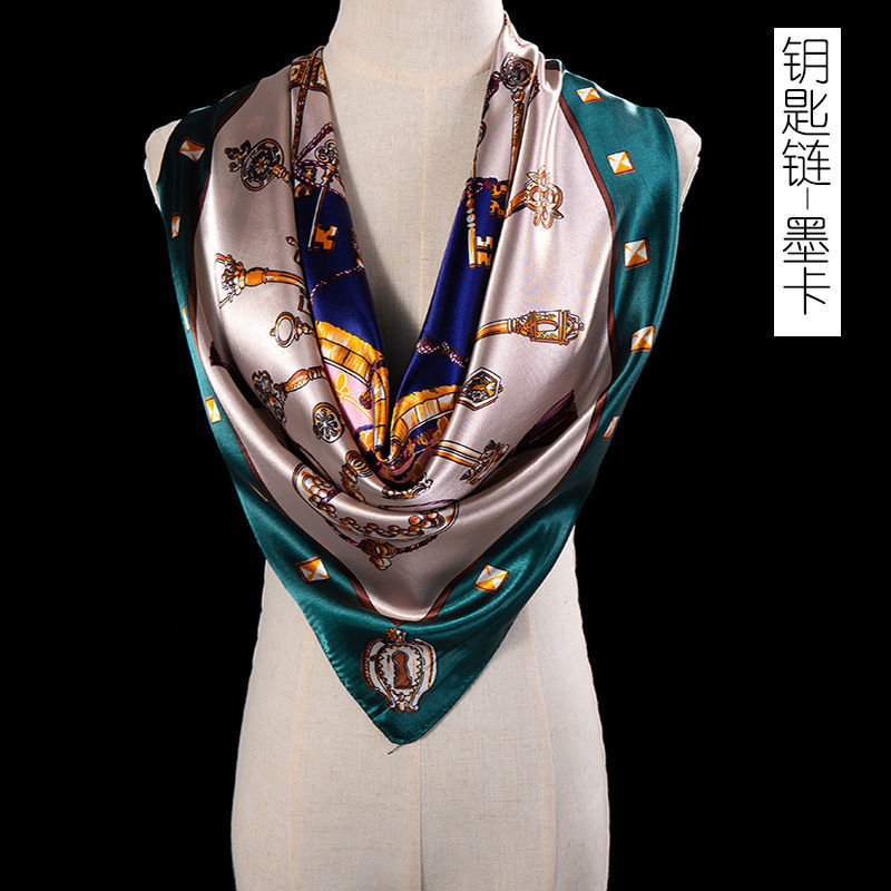 새로운 숙녀 가을과 겨울 패션 모조 실크 90*90 대형 사각형 스카프 인쇄 머리 스카프 따뜻한 여름 태양 보호