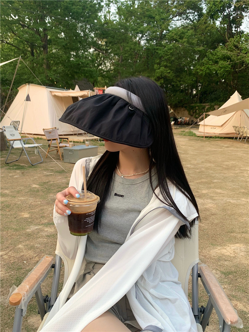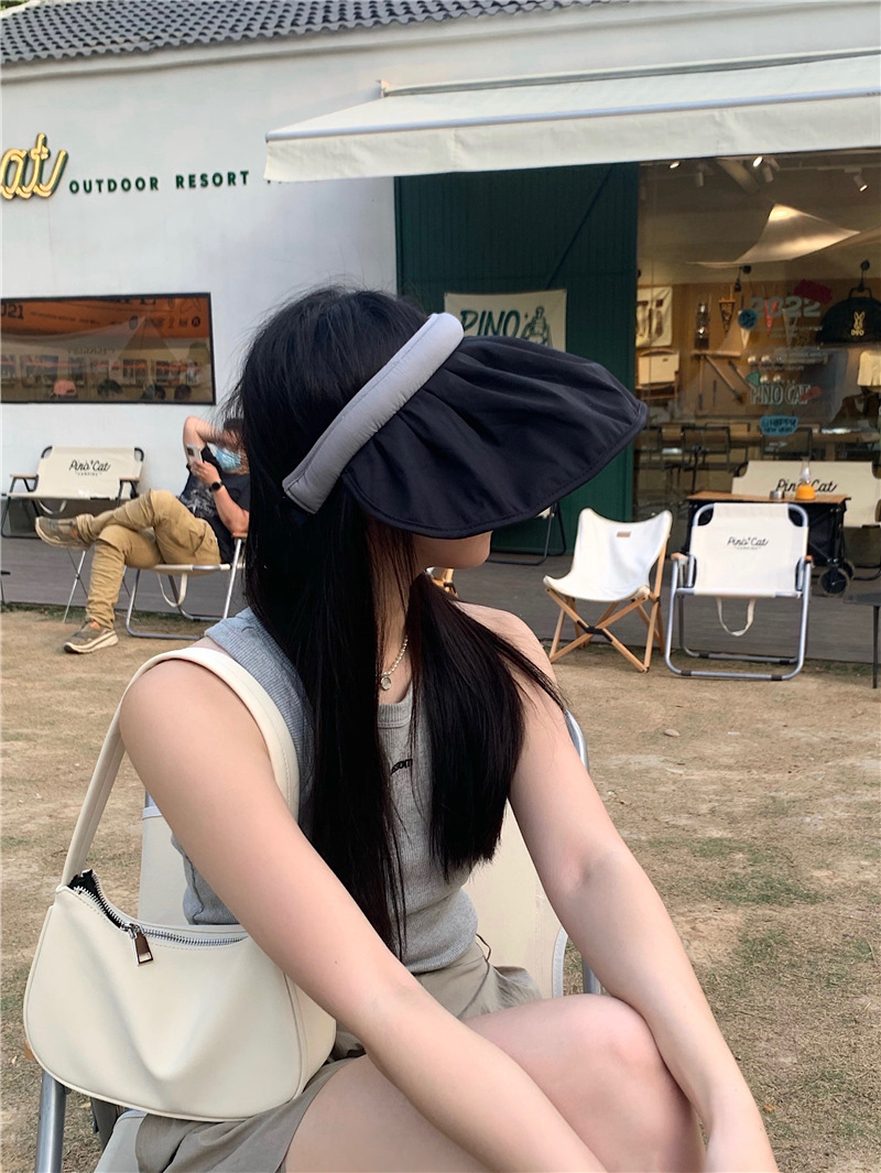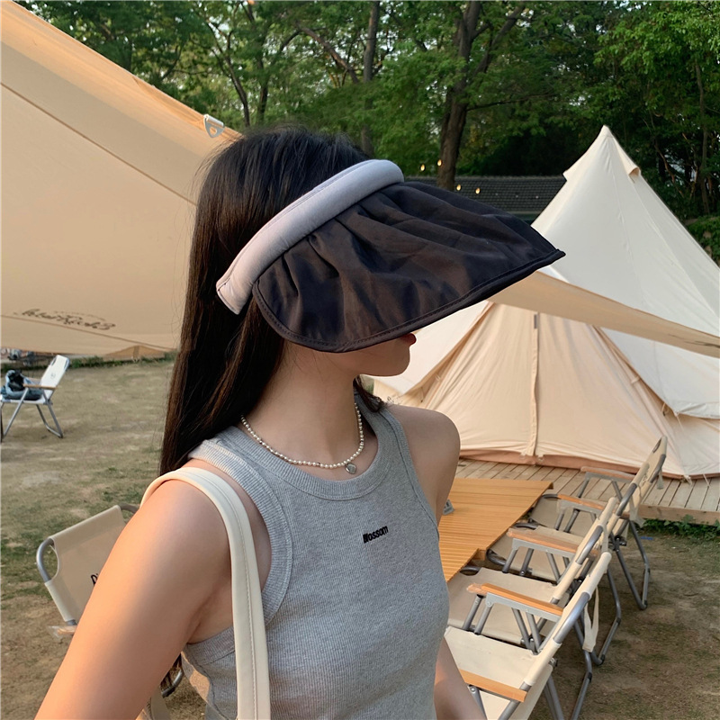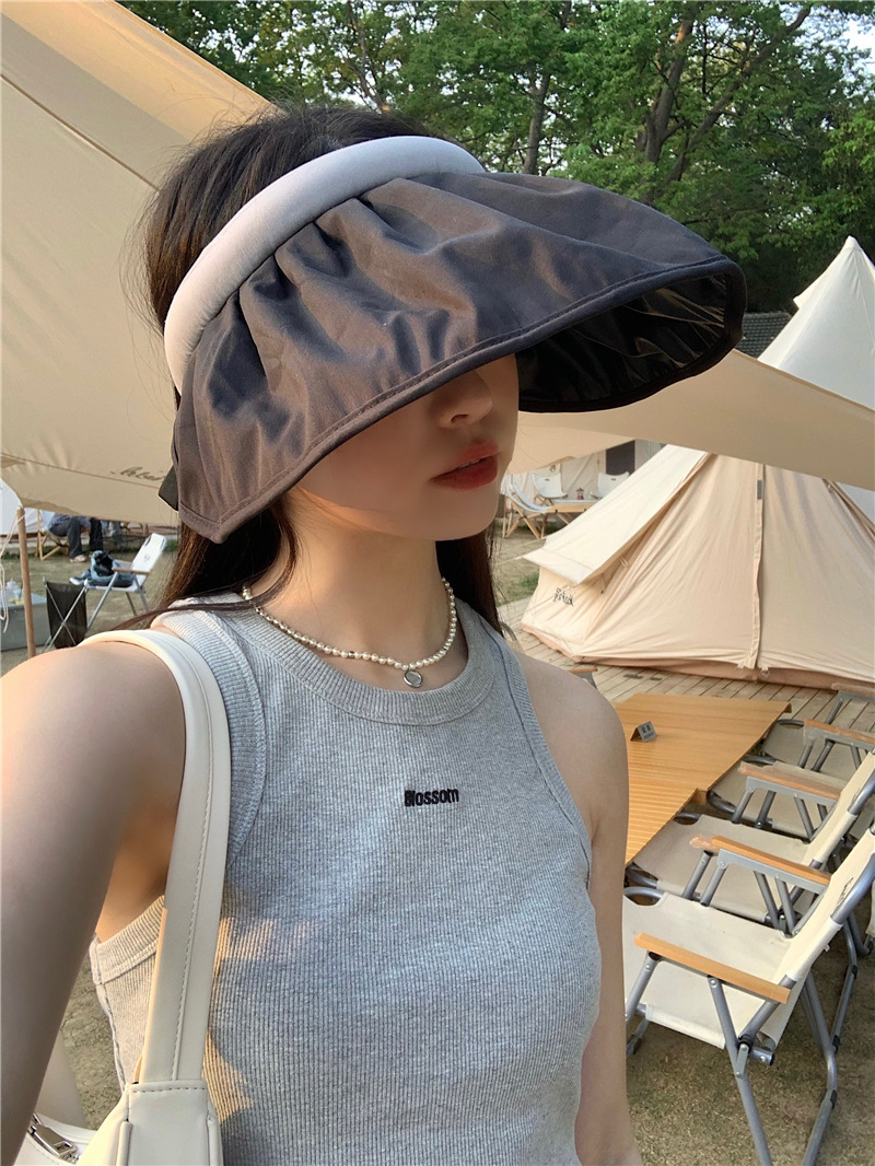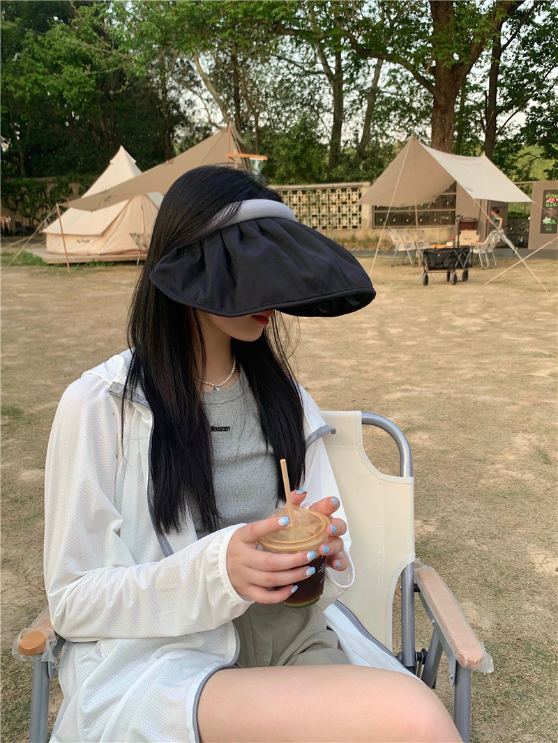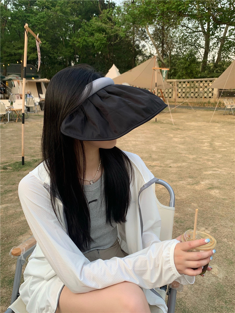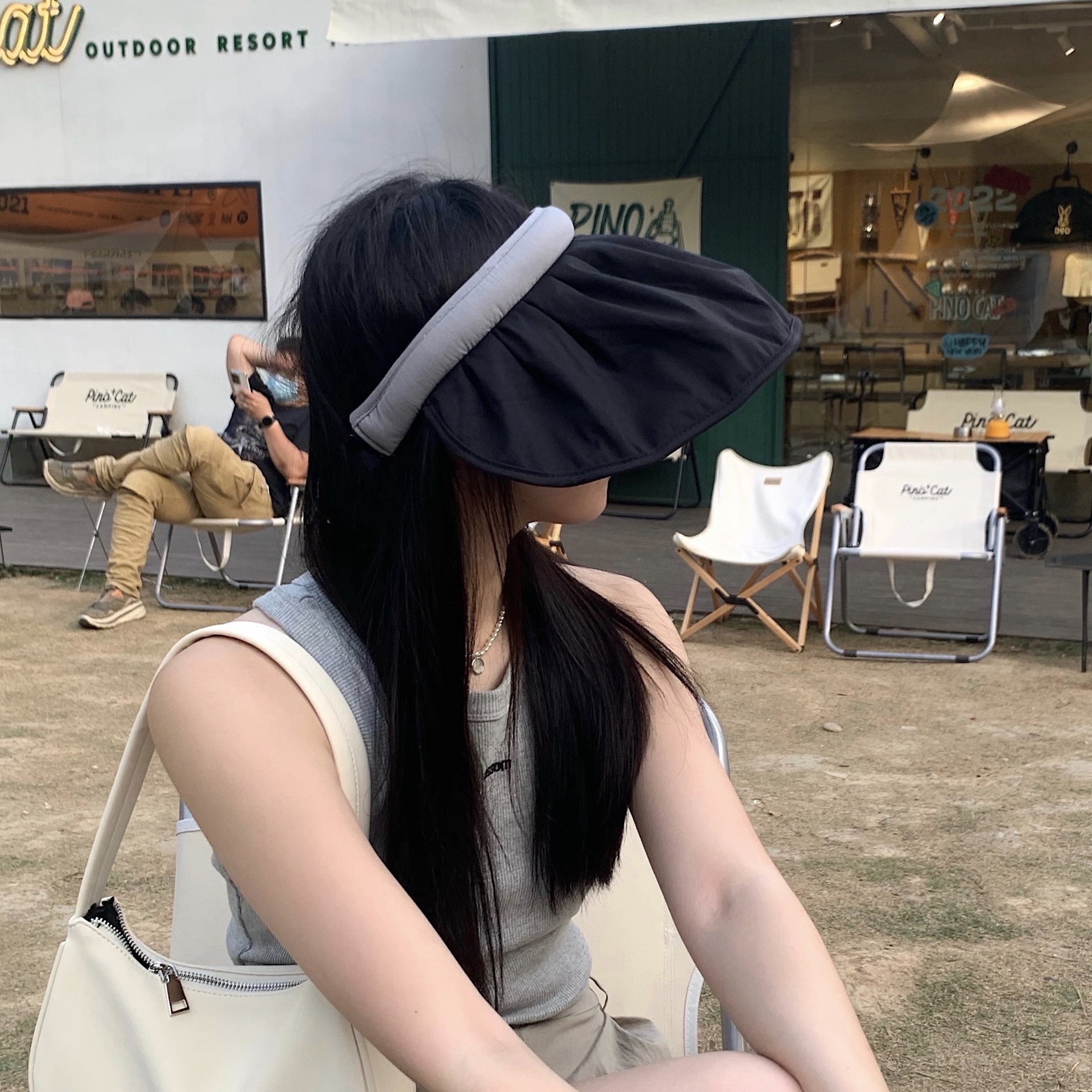 업그레이드 된 블랙 고무 쉘 모자 여름 햇빛 반대로 자외선 얼굴 음영 빈 탑 모자 어린이 대형 브림 선 스크린 태양 모자스토어 가기