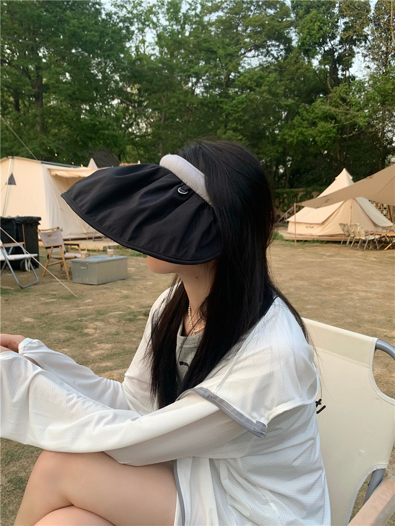 업그레이드 된 블랙 고무 쉘 모자 여름 햇빛 반대로 자외선 얼굴 음영 빈 탑 모자 어린이 대형 브림 선 스크린 태양 모자