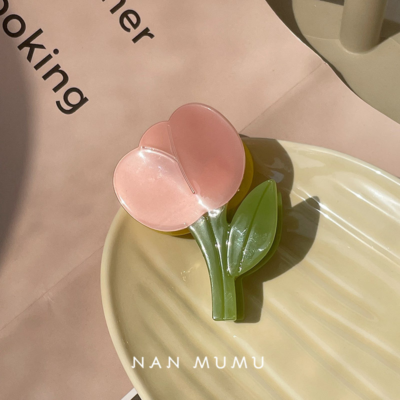 한국 신상 꽃 튤립 AB 이중 조합 비대칭 아세테이트 헤어핀 집게핀 샤크클립 헤어그립 도매