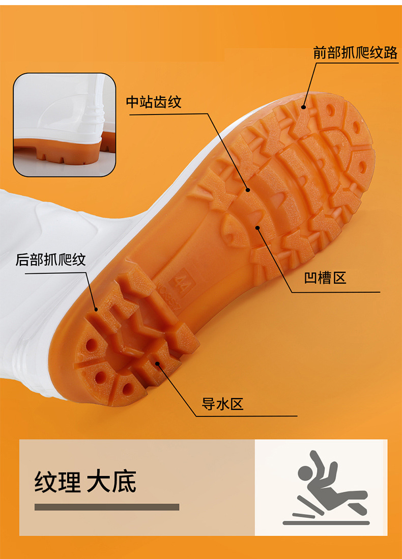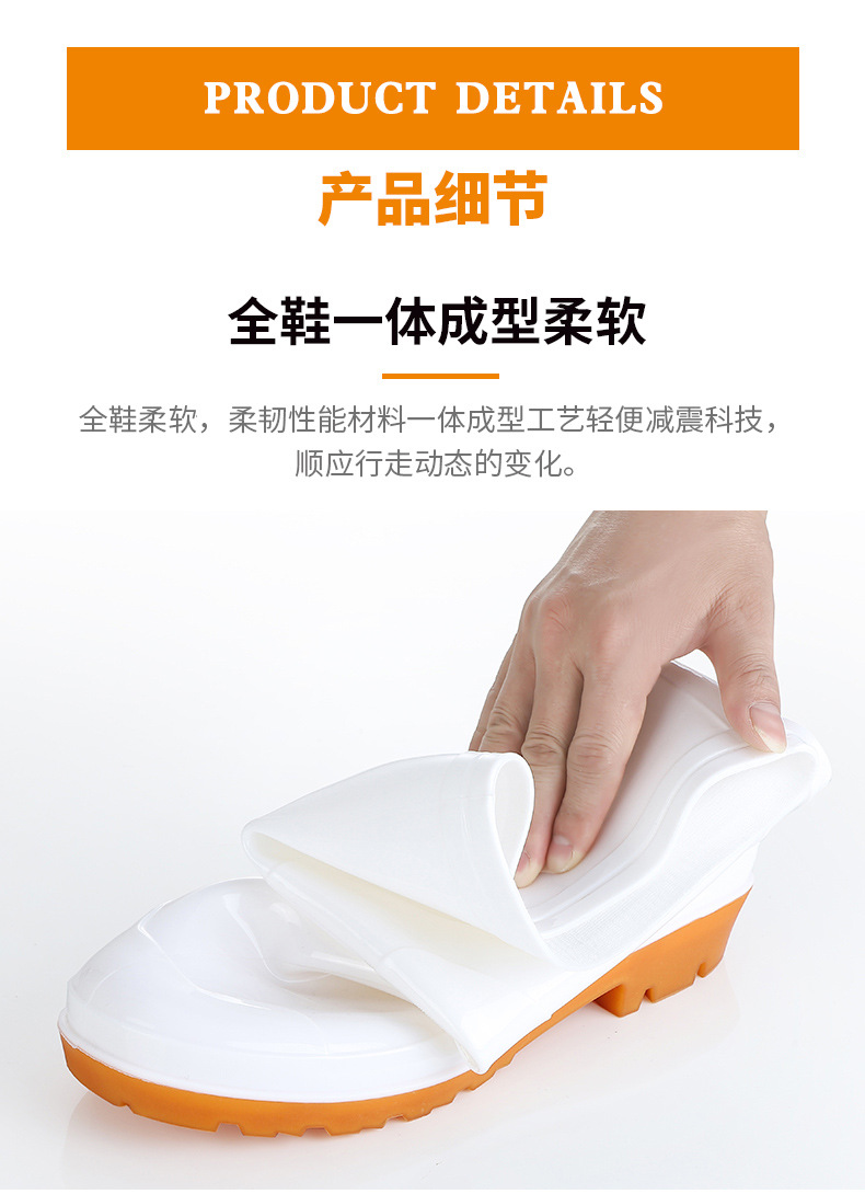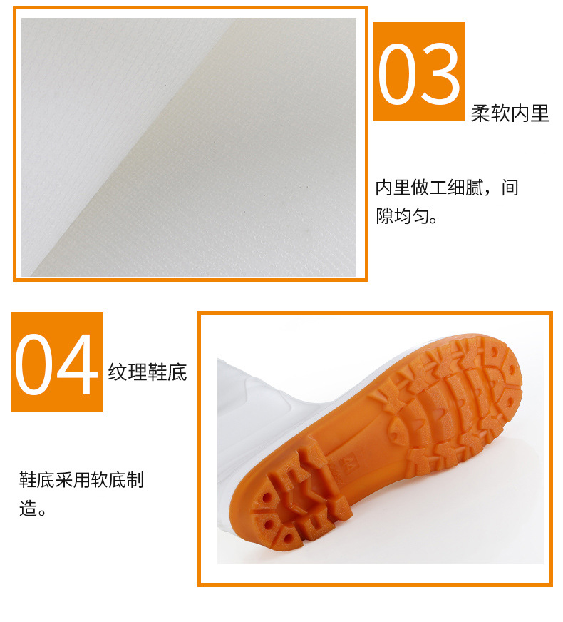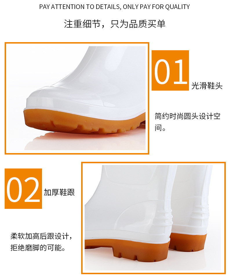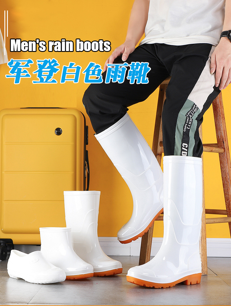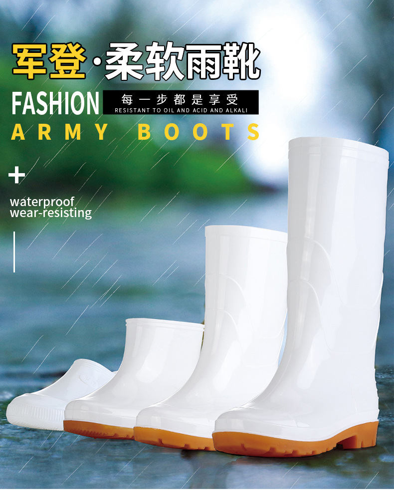 흰색 워터슈즈 PVC 고무 밑창 둥근 앞코 고등학교 식품 공장 미끄럼 방지 양식장 노동 보호 장화 식품 공장 전용