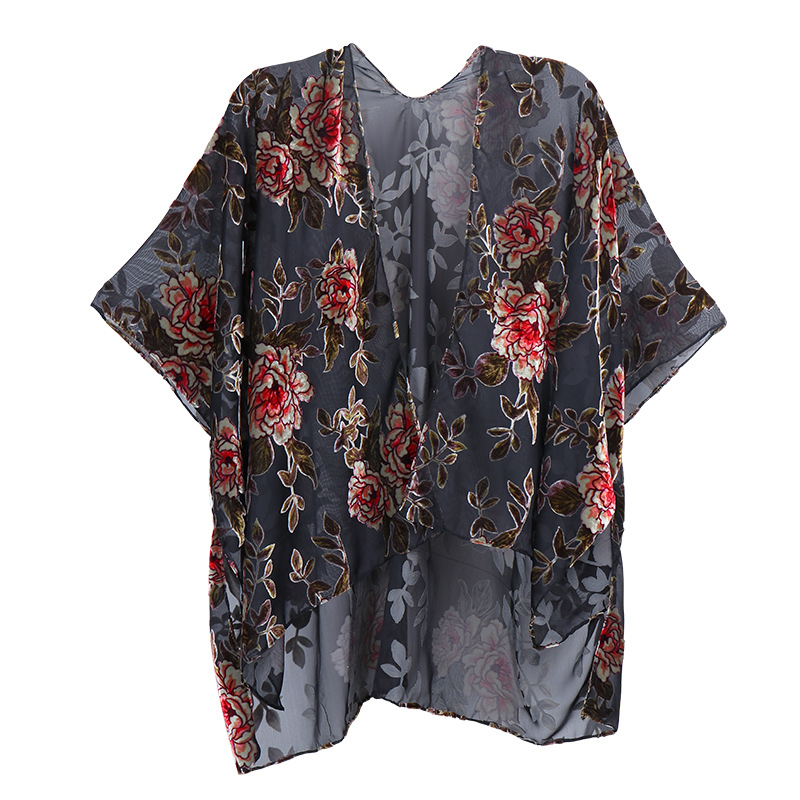 패션 대외 무역 짧은 벨벳 썩은 꽃 목도리 크로스-국경 뜨거운 통기성 유럽 및 미국 거리 자외선 차단제 분할 숄