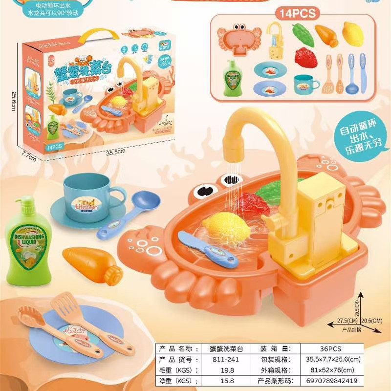 어린이 만화 전기 식기 세척 테이블 다양한 놀이 집 주방 싱크대 식기 세척 장난감 도매스토어 가기